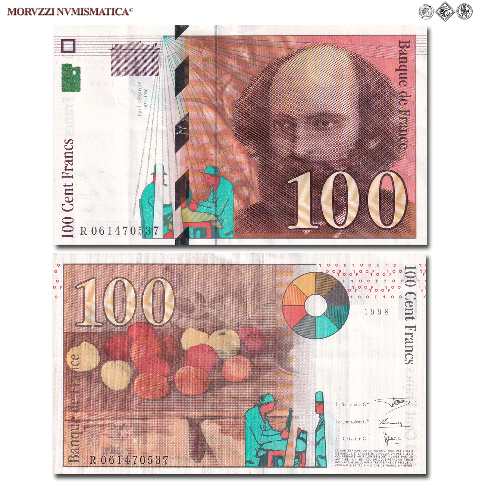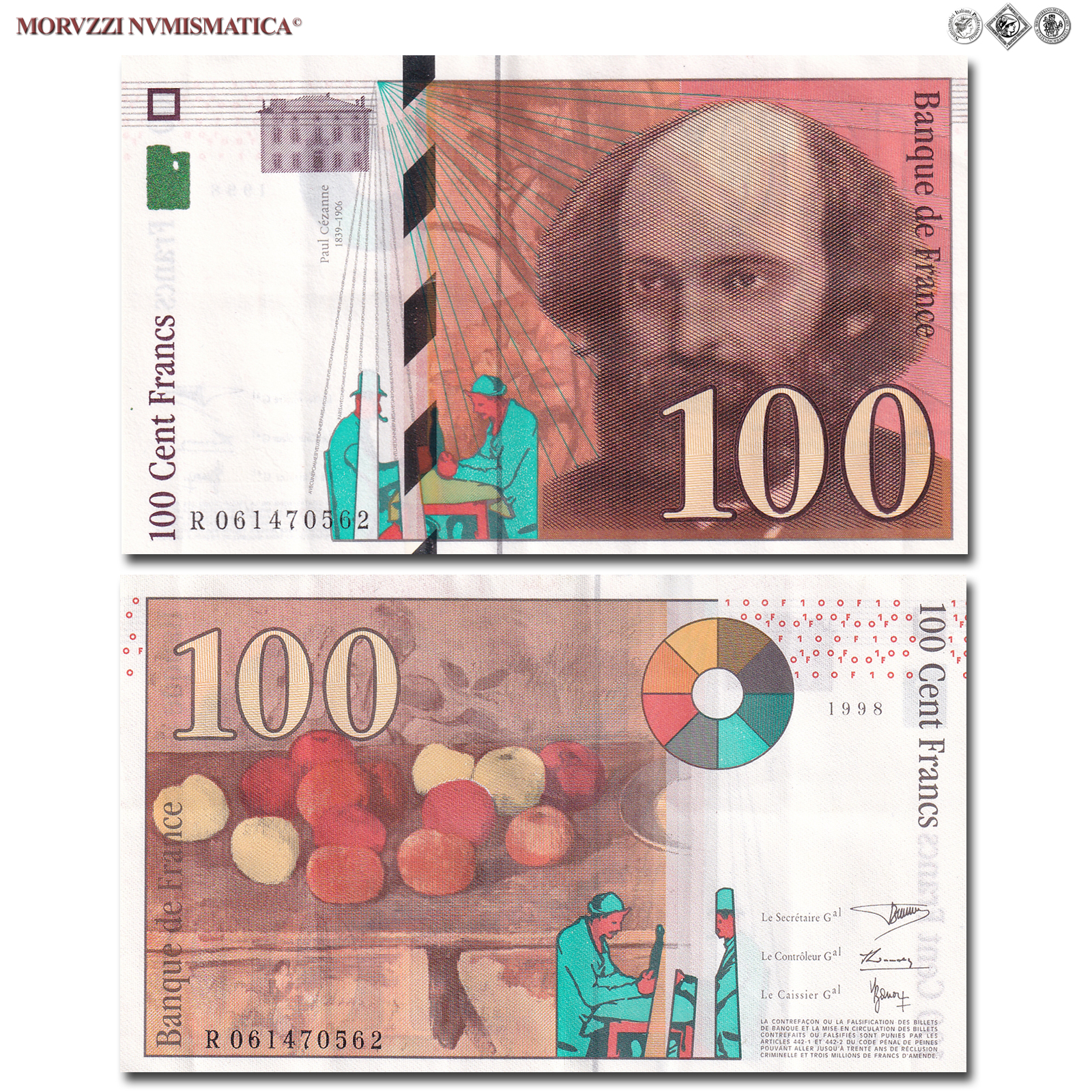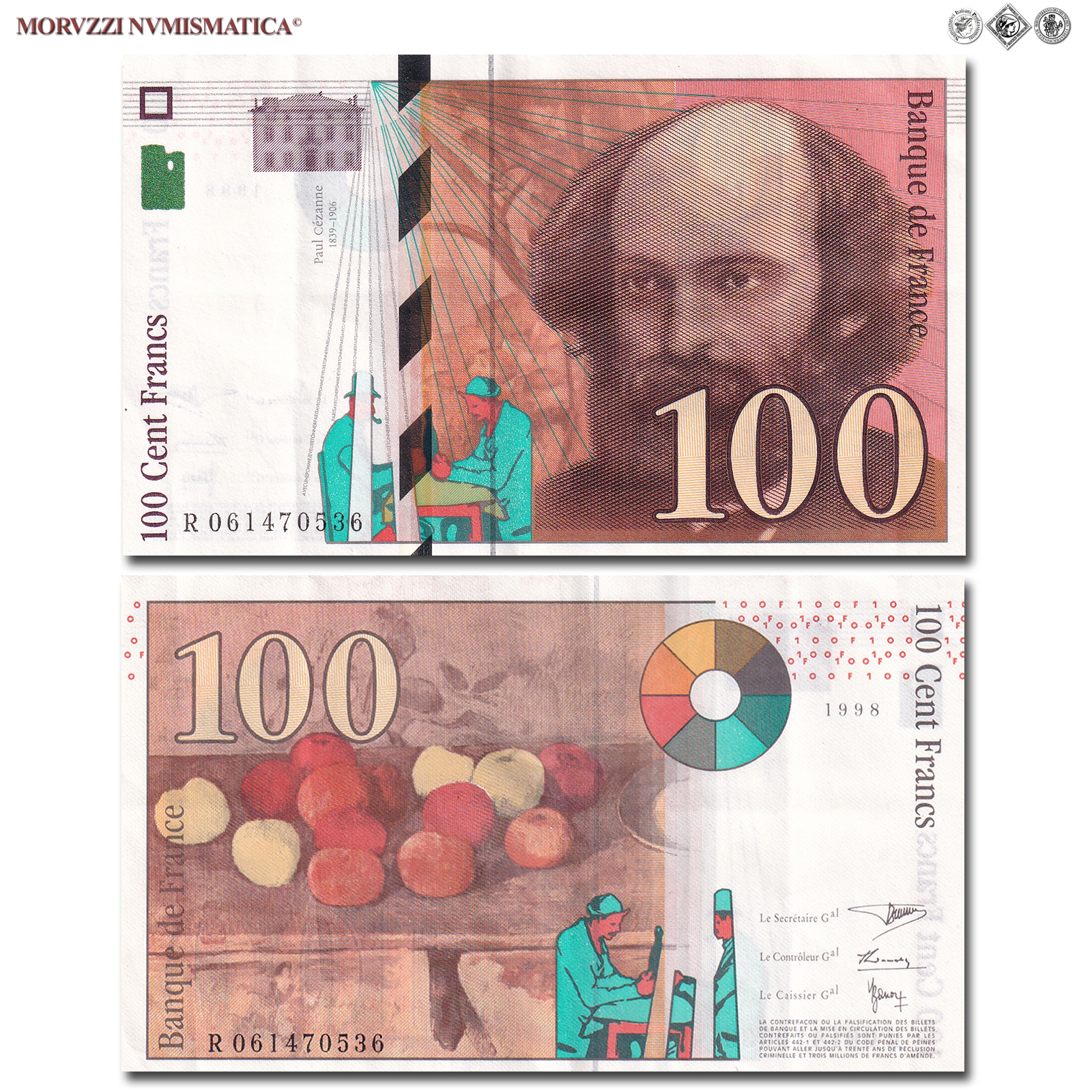 Francia, BANQUE DE FRANCE, FRANCHI 100, Paul Cézanne, 1997, Firme: Bruneel, Bonnardin, Barroux, mSPL, (Fayette 74.2) / République française CENT FRANCS Billets de banque français (World & French Paper Money - banconote mondiali europee francesi - banconota mondiale europea francese)