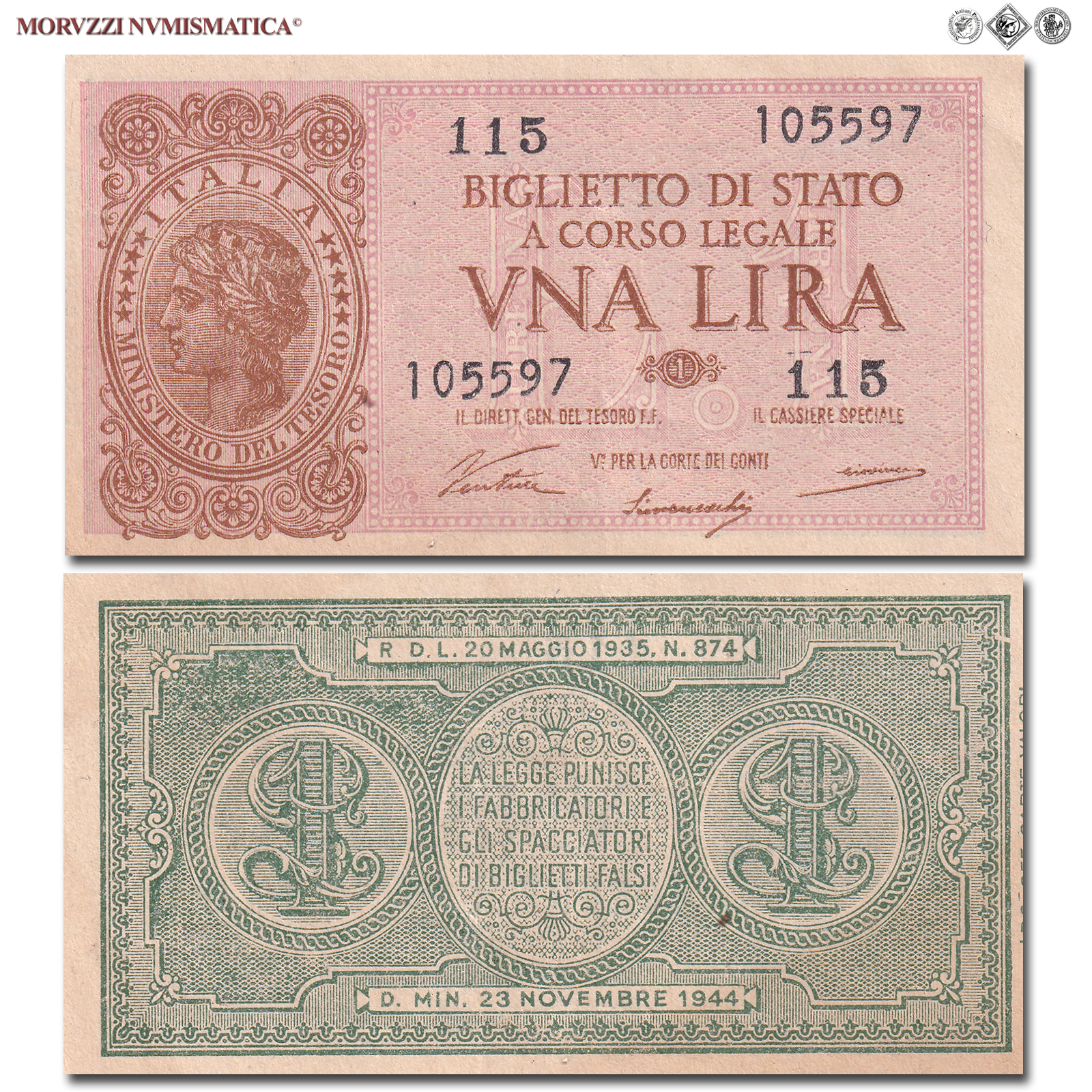 Italia, Luogotenenza, BIGLIETTO DI STATO, LIRA, 23.11.1944, Firme: Ventura, Simoneschi, Giovinco, FDS, (Crapanzano BS7) / banconote italiane (cartamoneta italiana - biglietti da collezione - banconota da una lira)