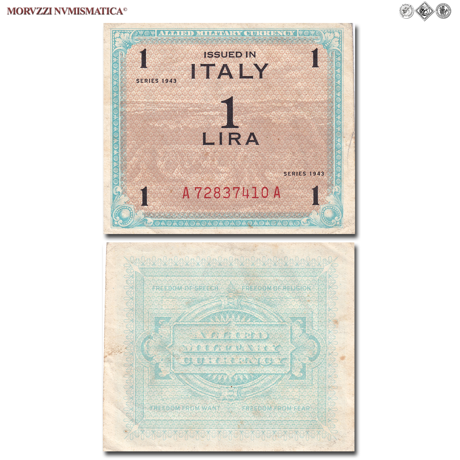 Italia, Occupazione Americana, ALLIED MILITARY CURRENCY, AM-LIRA, Tipografia: FLC (Forbes Lithograph Corporation), 1943, SPL, (Crapanzano OS32) / banconote italiane (cartamoneta italiana di occupazione straniera - banconota da collezione)
