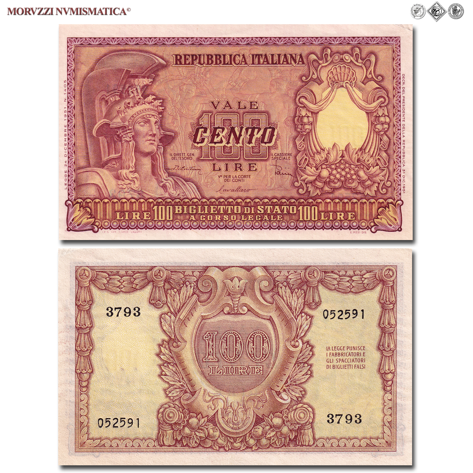 Repubblica Italiana, BIGLIETTO DI STATO, LIRE 100, Italia Elmata, 18.07.1942, Italia Elmata, Firme: Di Cristina, Cavallaro, Parisi, qFDS, (Crapanzano BS57) / banconote italiane (cartamoneta italiana - biglietti da collezione - banconota da cento lire)