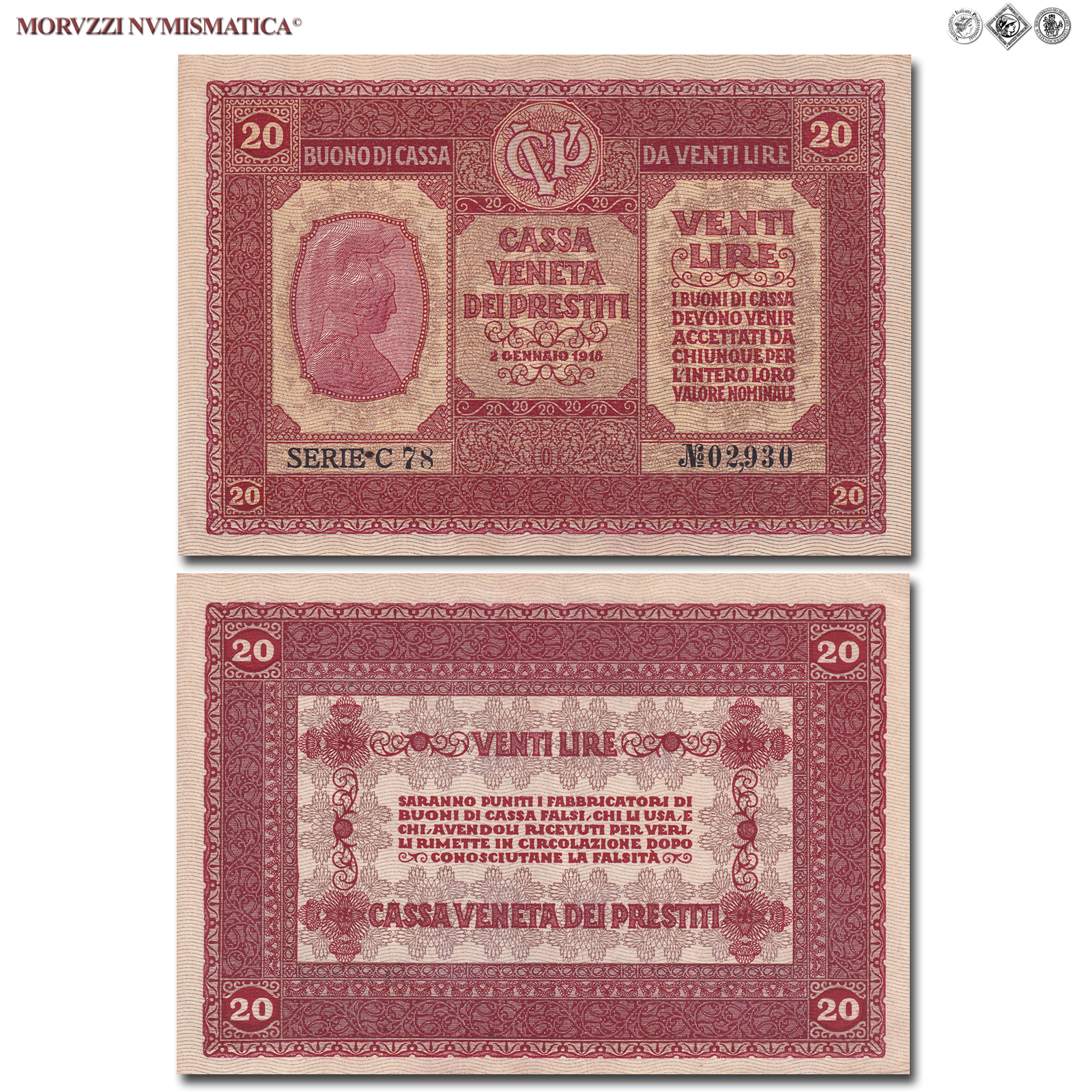 Italia, Occupazione austriaca, CASSA VENETA DEI PRESTITI, BUONO DI CASSA, LIRE 20, 02.01.1918, qFDS, (Crapanzano OS7) / banconote italiane (cartamoneta italiana - banconota da collezione)