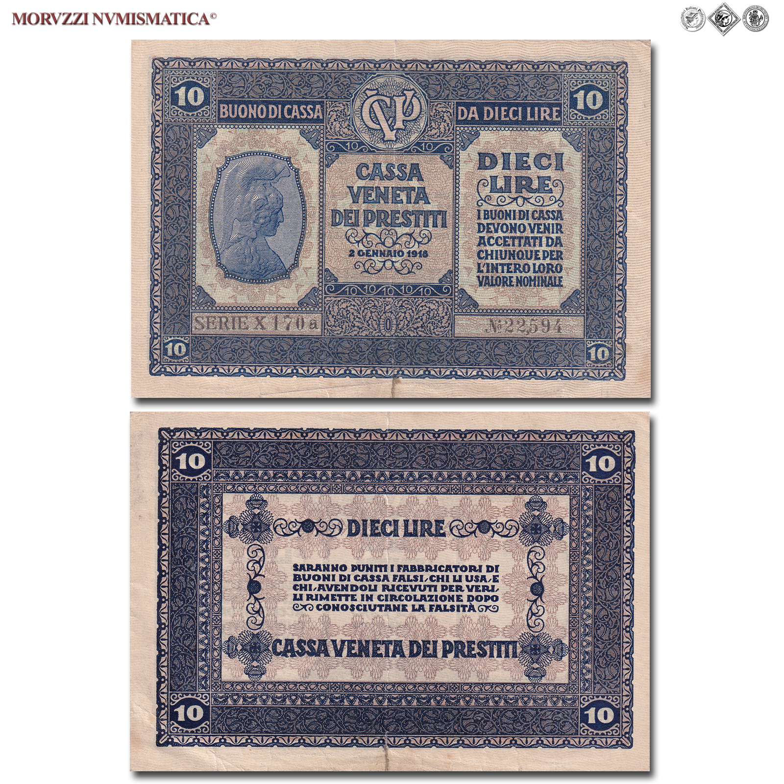 Italia, Occupazione austriaca, CASSA VENETA DEI PRESTITI, BUONO DI CASSA, LIRE 10, 02.01.1918, mBB, (Crapanzano OS6) / banconote italiane (cartamoneta italiana - banconota da collezione)