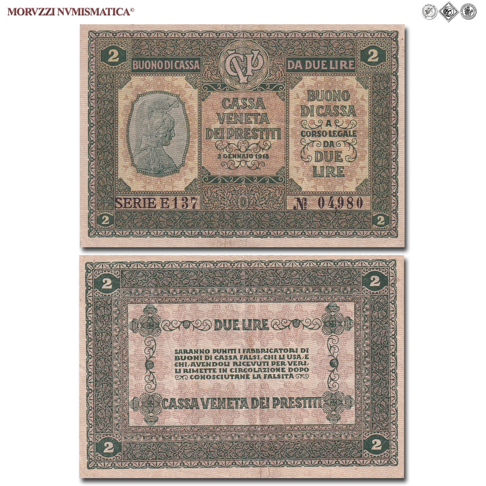 Italia, Occupazione austriaca, CASSA VENETA DEI PRESTITI, BUONO DI CASSA, LIRE 2, 02.01.1918, mBB, (Crapanzano OS5) / banconote italiane (cartamoneta italiana - banconota da collezione)