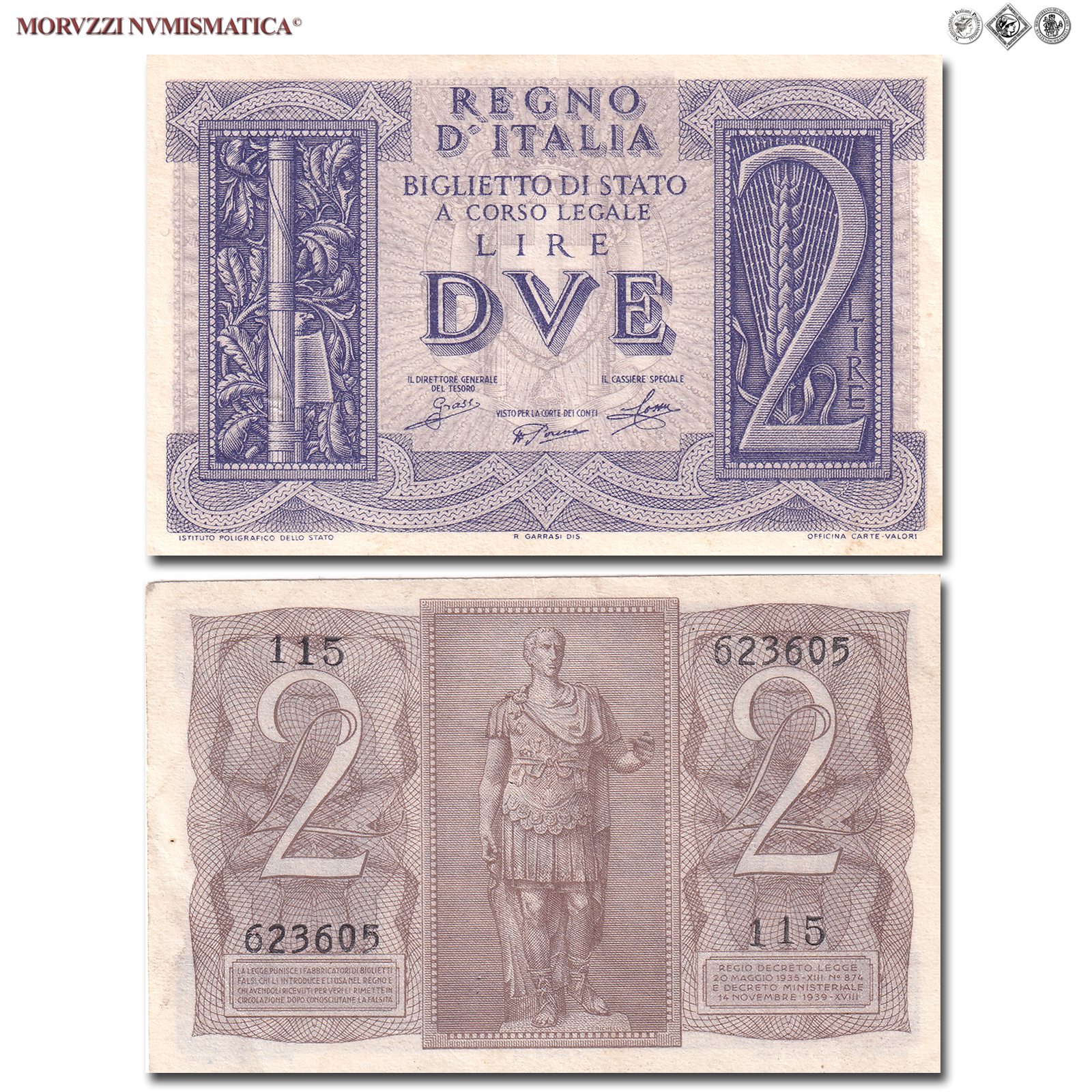 Regno d'Italia, Vittorio Emanuele III, BIGLIETTO DI STATO, LIRE 2, Impero - Giulio Cesare, 14.11.1939, Firme: Grassi, Porena, Cossu, qFDS, (Crapanzano BS14) / banconote italiane (cartamoneta italiana - biglietti da due lire)