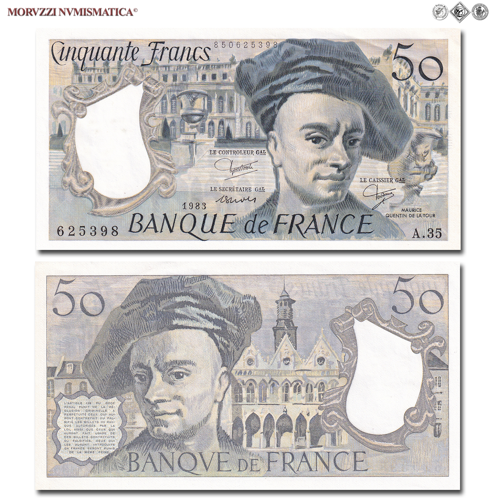 Francia, BANQUE DE FRANCE, FRANCHI 50, Maurice Quentin de La Tour, 1983, Firme: Dentaud, Bruneel, Charriau, qFDS, (Pick 152b) / République française CINQUANTE FRANCS Billets de banque français (World & French Paper Money - banconote mondiali europee francesi - banconota mondiale europea francese)