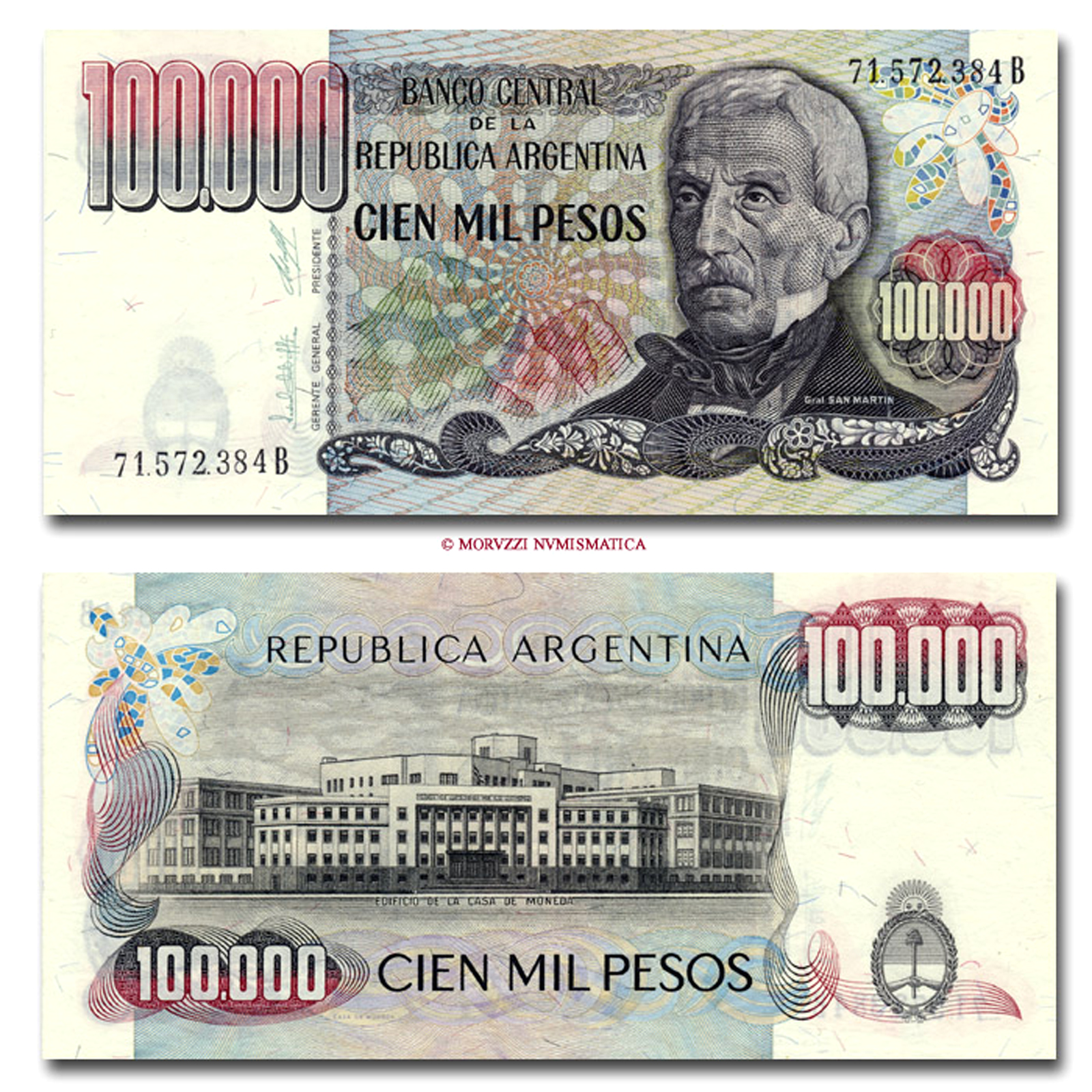 Argentina, BANCO CENTRAL DE LA REPUBLICA ARGENTINA, 100000 PESOS, (1979-1983), Generale José de San Martin, FDS, (Bruce 308b) / banconote mondiali (cartamoneta mondiale)