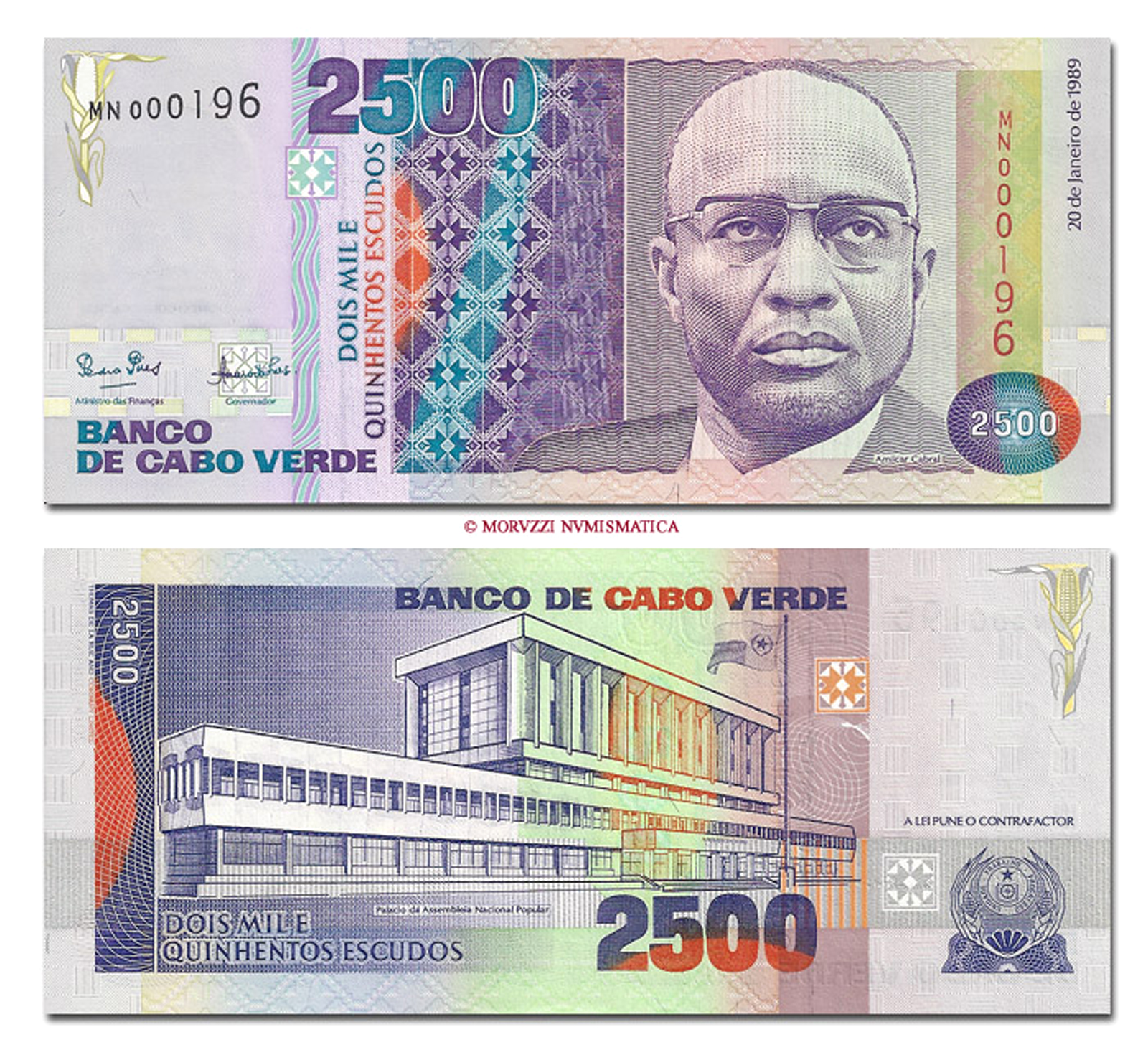 CAPO VERDE, Banco de Cabo Verde, SCUDI 2500, Amilcar Cabral, 20.01.1989