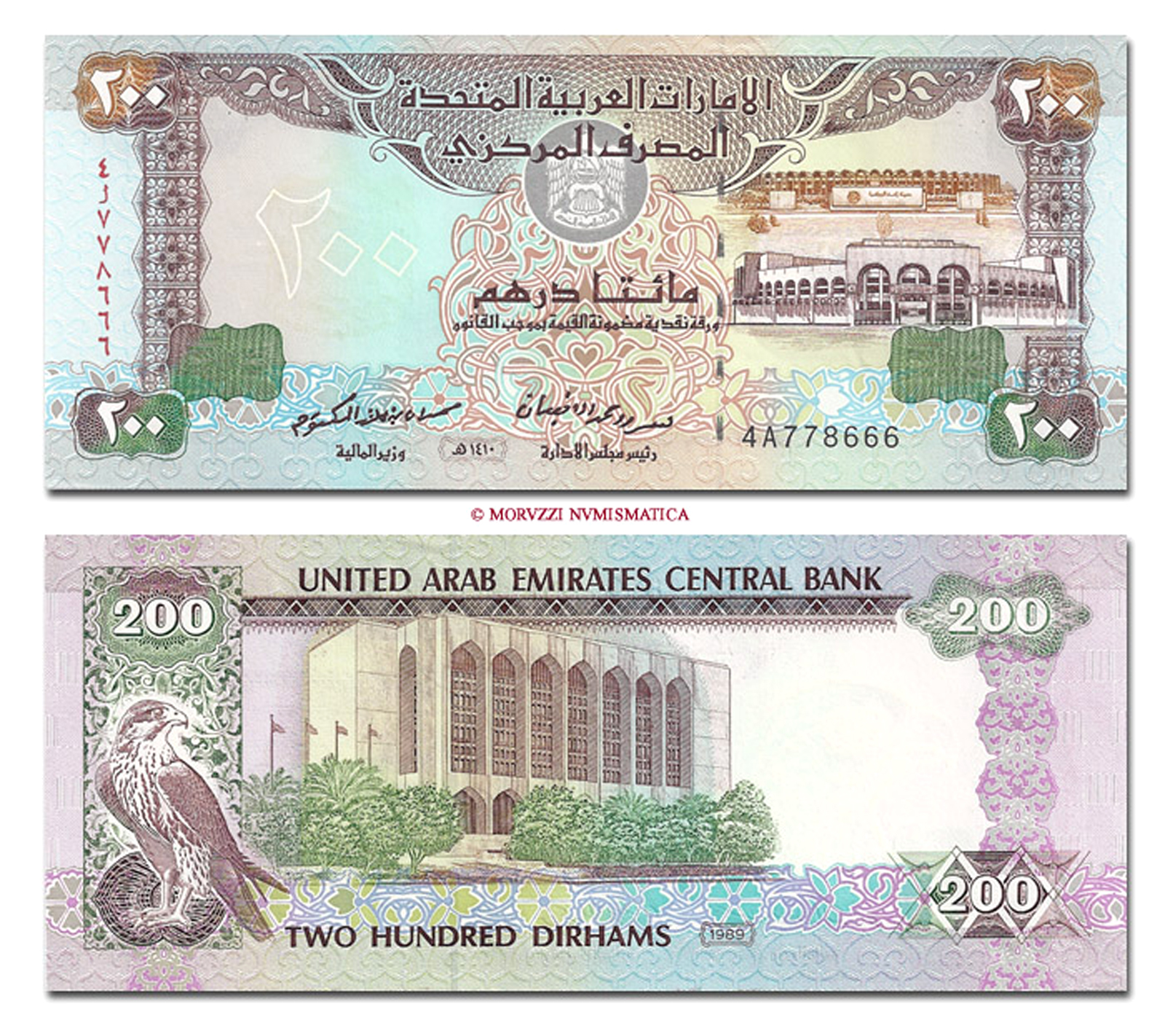 EMIRATI ARABI UNITI, Unit. Arab Emirat. Centr. Bank, DIRHAMS 200, -, 1989