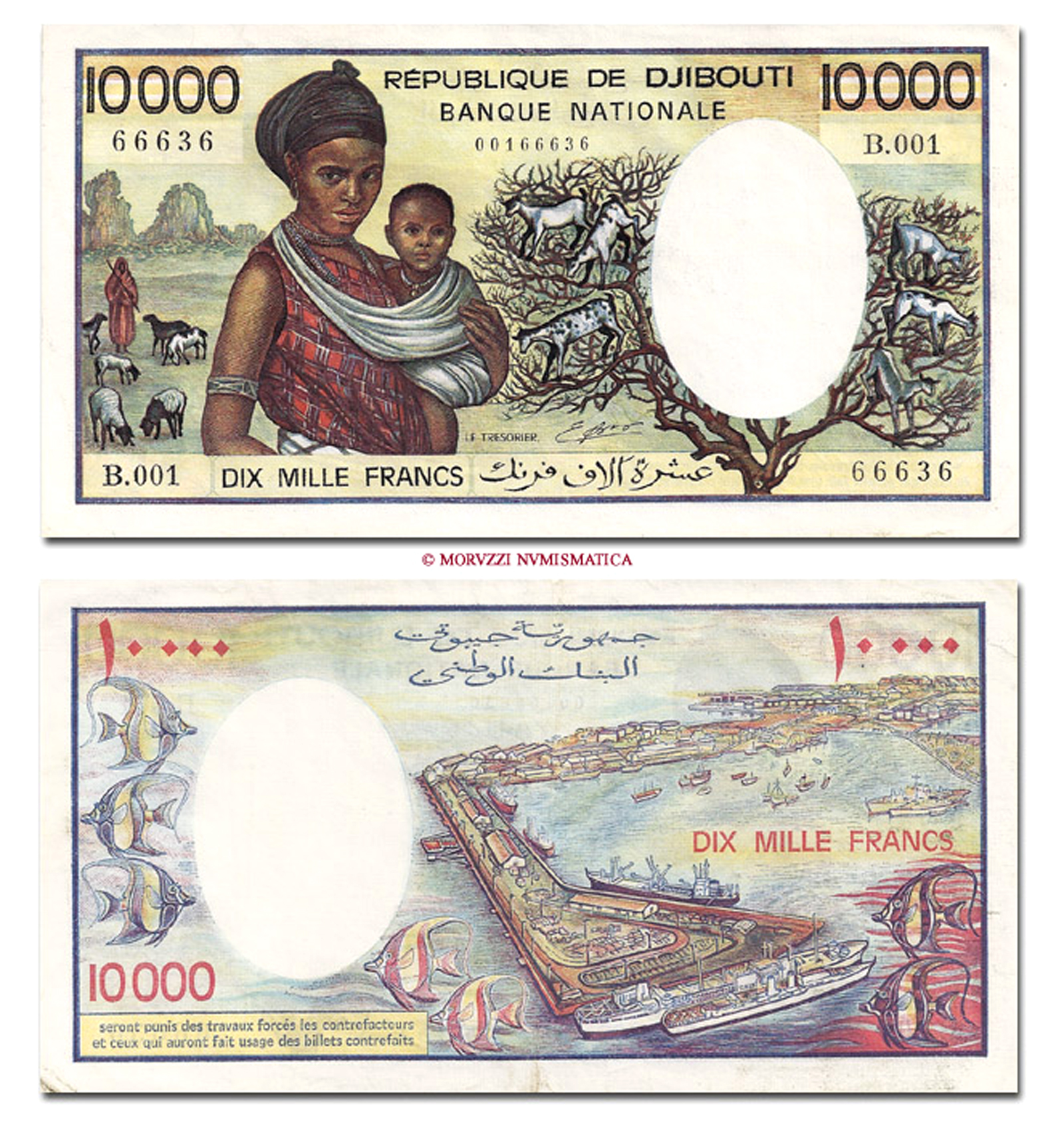 GIBUTI Repubblica, Banque Nationale, FRANCHI 10.000, -, ND (1984)