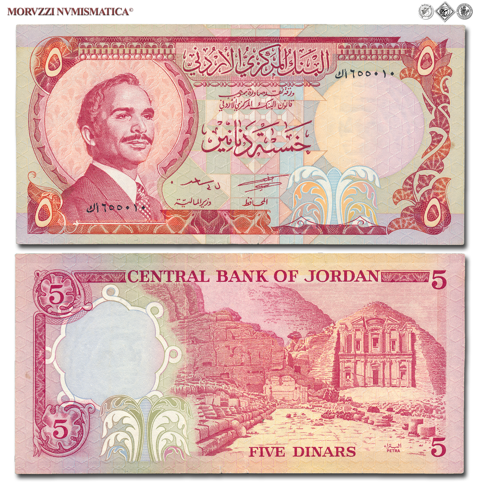 GIORDANIA, Central Bank of Jordan, 5 DINARS, Re Hussein, ND (1975-92), FDS, (Bruce 19a) / banconote mondiali (World Paper Money - banconota mondiale - cartamoneta da collezione)