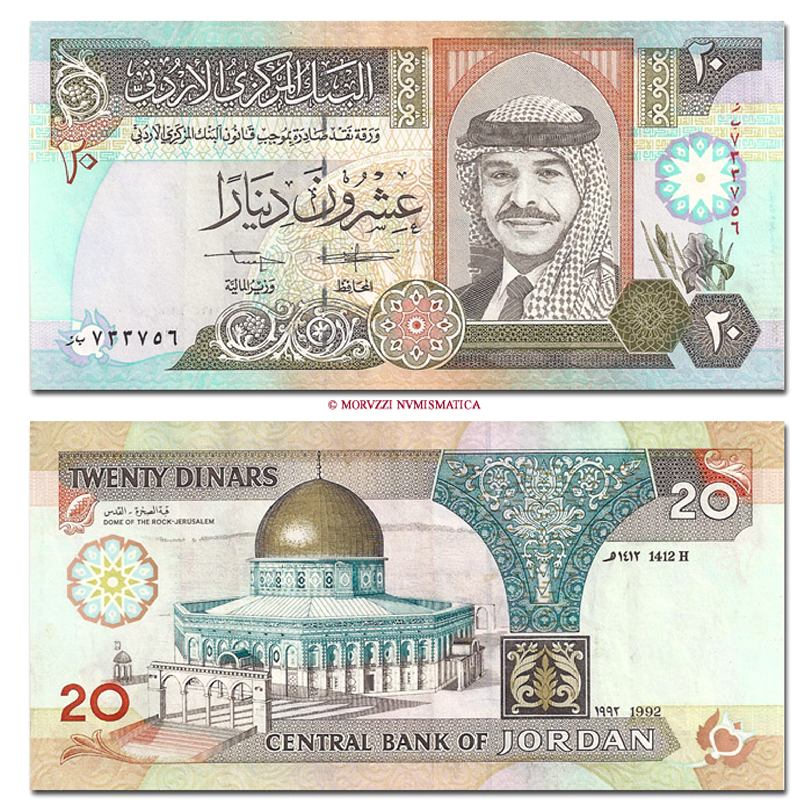 GIORDANIA, Central Bank of Jordan, DINARS 20, Re Hussein, 1992