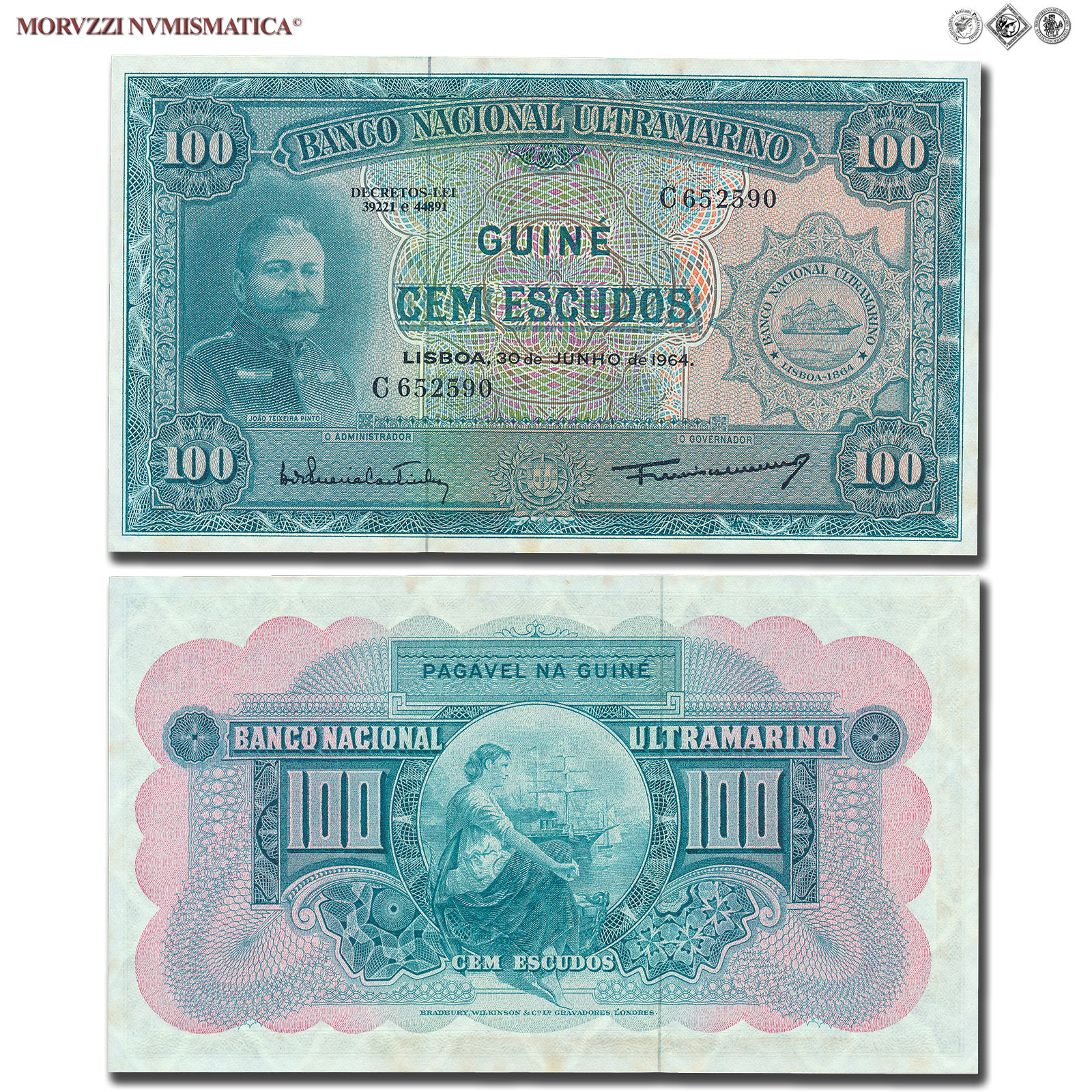 Guinea Portoghese, BANCO NACIONAL ULTRAMARINO, 100 ESCUDOS, 30.06.1964, Joao Teixeira Pinto, FDS, (R), (Bruce 41) / banconote mondiali rare (cartamoneta mondiale rara - banconota da collezione)
