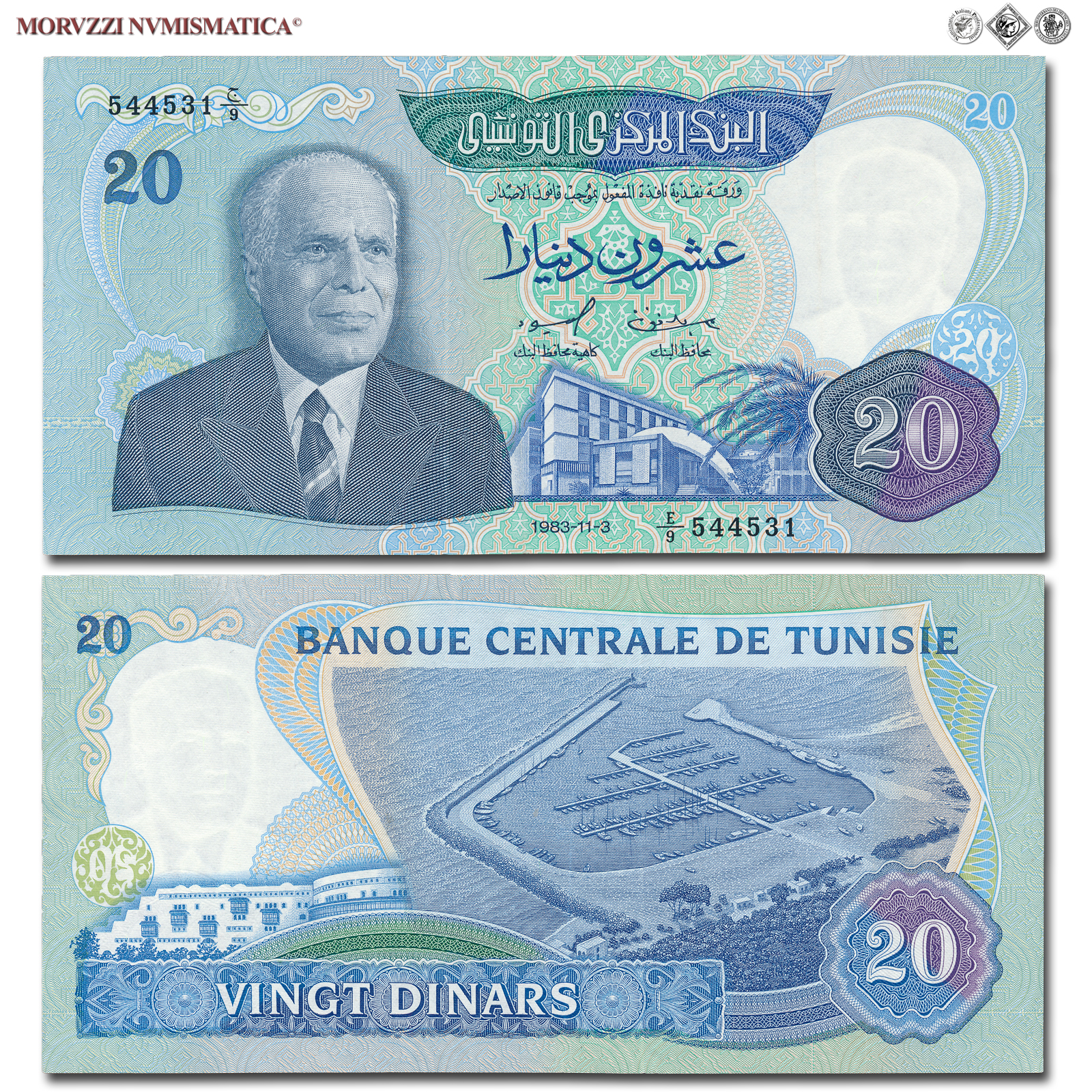 TUNISIA, Banque Centrale de Tunisie, 20 DINAR, 3.11.1983, mSPL, (Bruce 81) / banconote mondiali islamiche (banconota mondiale islamica - cartamoneta da collezione)
