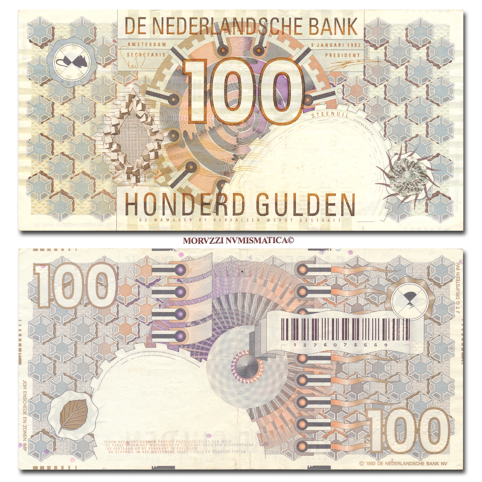 Olanda, DE NEDERLANDSCHE BANK, 100 GULDEN, 09.01.1992, qSPL, (Price 101) / Dutch banknotes (banconote europee olandesi - cartamoneta europea - banconota olandese) Nederlandse bankbiljetten - Nederlands papiergeld - HONDERD GULDEN