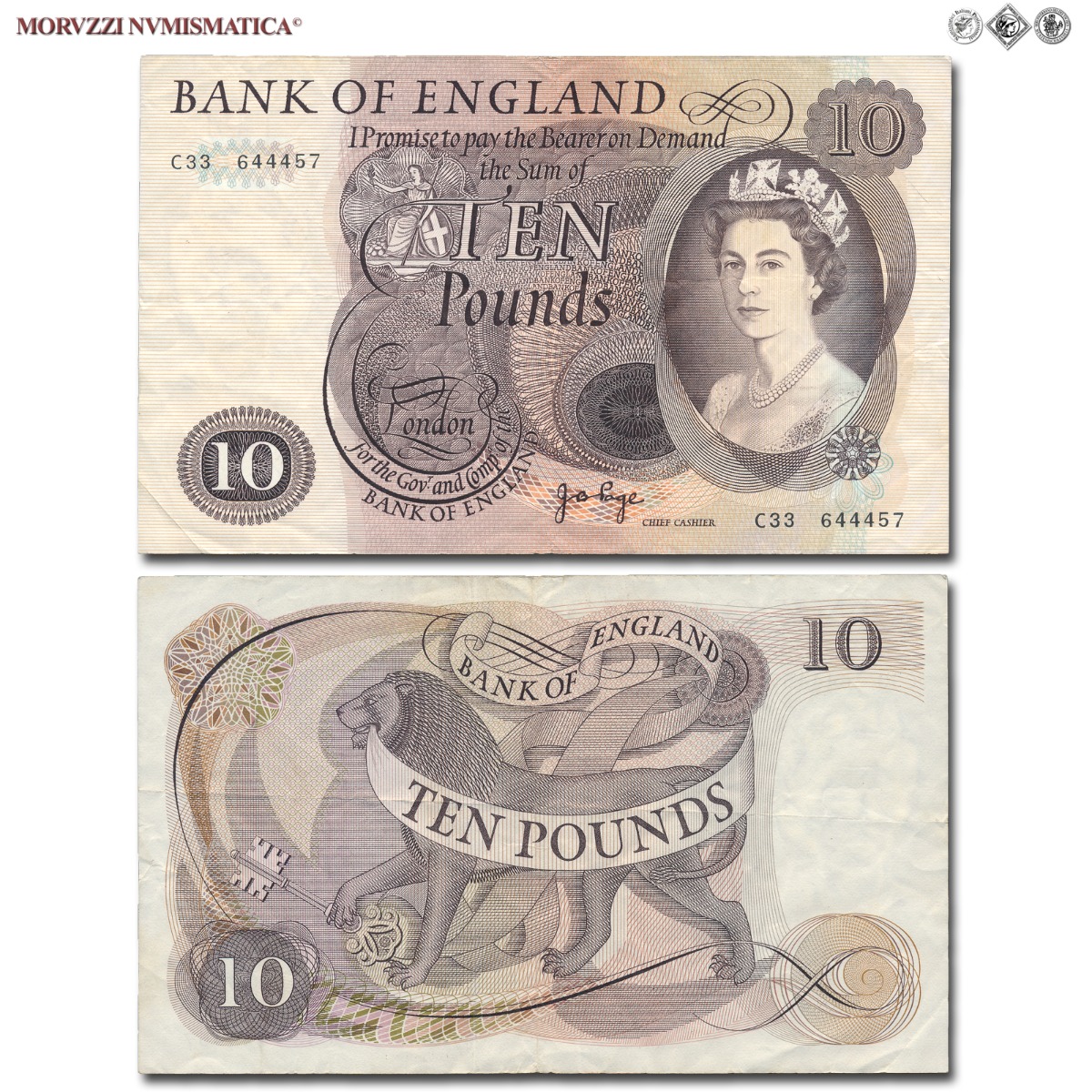 Gran Bretagna, Elisabetta II, BANK OF ENGLAND, POUNDS 10, 1964-1975, Firme: J.B. Page, mBB, (KM 376) / Queen Elizabeth II of United Kingdom TEN POUNDS World & British Paper Money (banconote mondiali europee inglesi - banconota mondiale europea inglese)