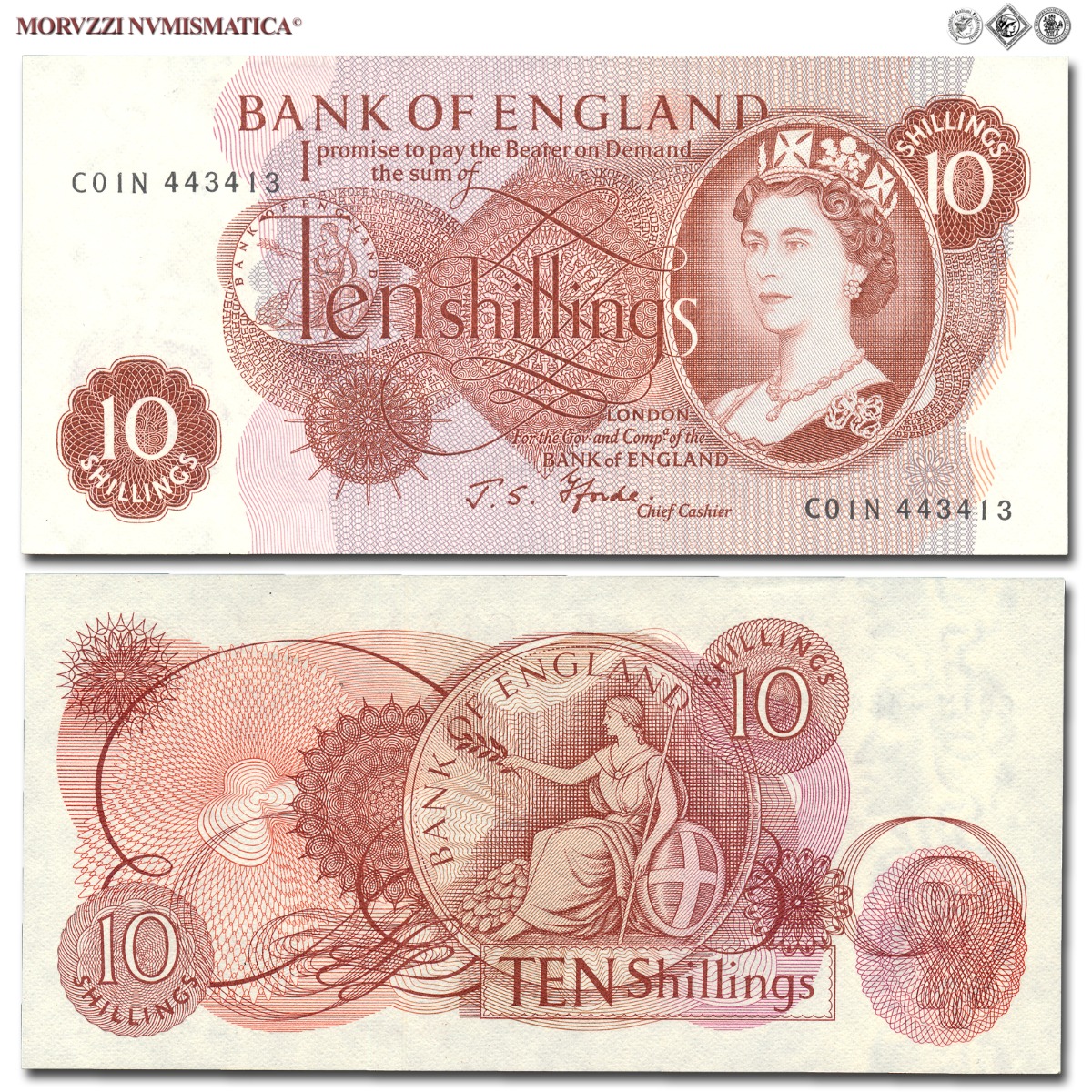 Gran Bretagna, Elisabetta II, BANK OF ENGLAND, SHILLINGS 10, 1966-1970, Firme: J.S. Fforde, FDS, (KM 373) / Queen Elizabeth II of United Kingdom TEN SHILLINGS World & British Paper Money (banconote mondiali europee inglesi)