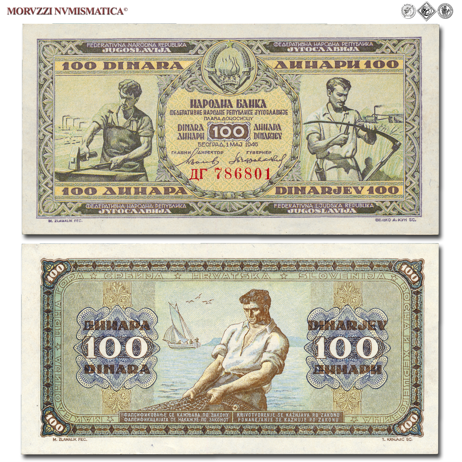 JUGOSLAVIA, 100 DINARI, 1.5.1946, FDS, (Pick 65a) / Федеративна Народна Република Југославија 100 динара (banconote mondiali europee jugoslave (World Paper Money - banconota mondiale europea jugoslava - cartamoneta da collezione)