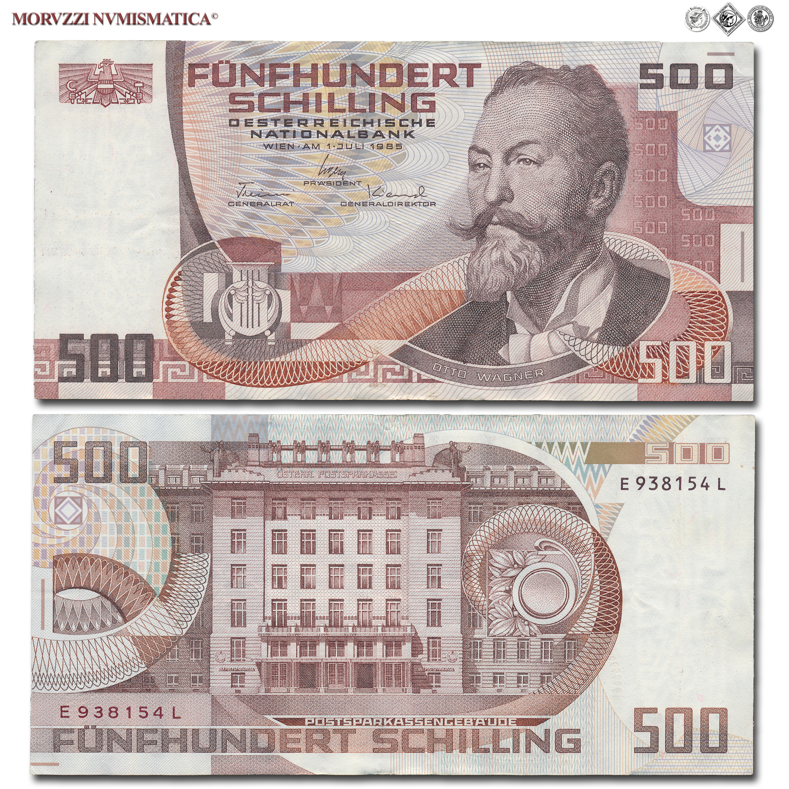 Austria, Repubblica, OESTERREICHISCHE NATIONALBANK, SCHILLING 500, 01.07.1985, Otto Wagner, qSPL, (KM 151) / Republik Österreich FÜNFHUNDERT SCHILLING (Österreichische Banknoten - banconote mondiali europee austriache - cartamoneta europea austriaca)