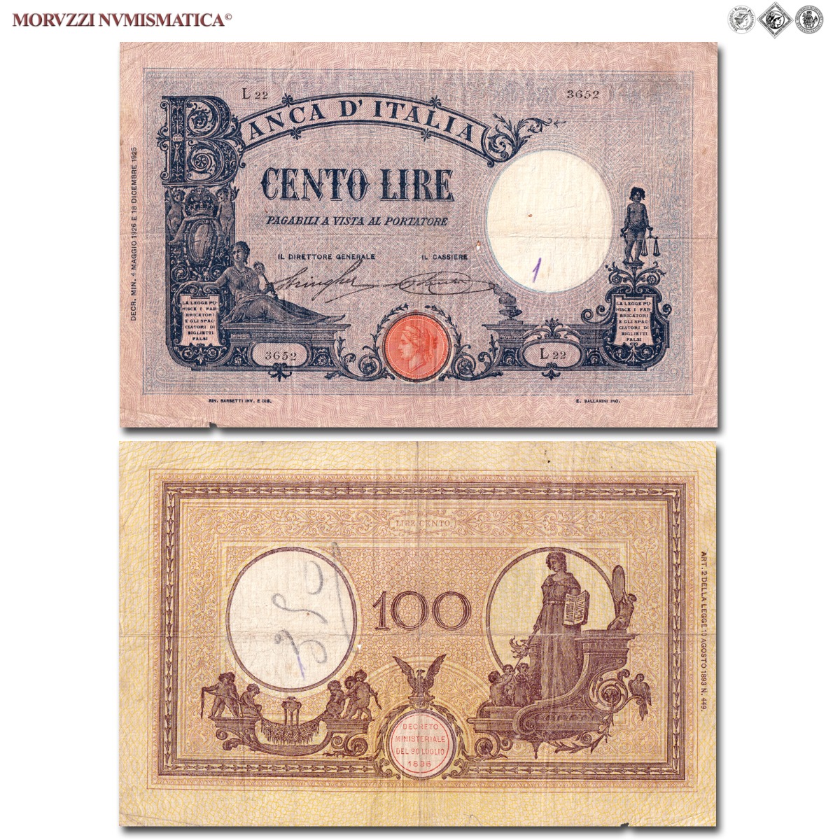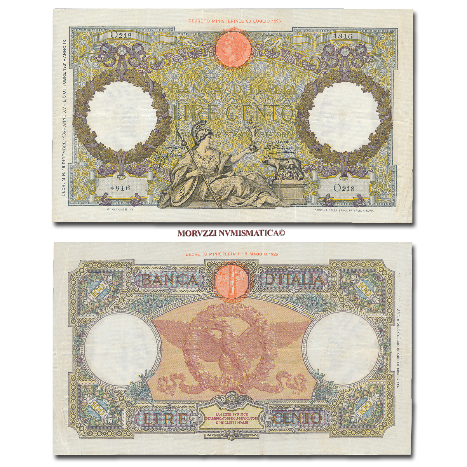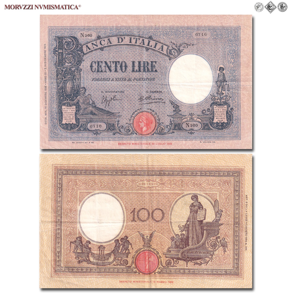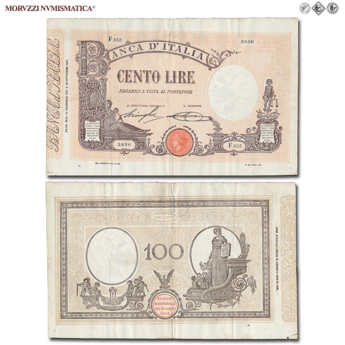 Regno d'Italia, Vittorio Emanuele III, BANCA D'ITALIA, LIRE 100, Barbetti Matrice laterale - decreto ministeriale, 12.02.1921, Firme: Stringher, Sacchi, mBB, (R), (Crapanzano 173) / banconote italiane rare (cartamoneta italiana rara da collezione)