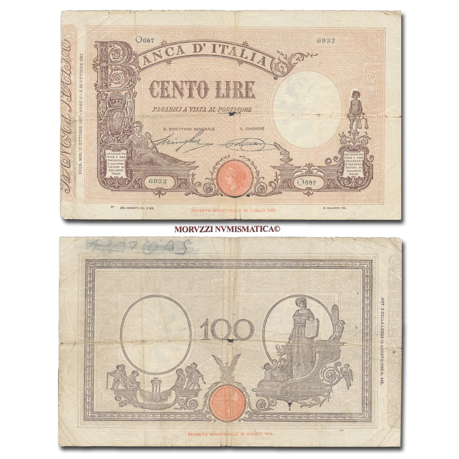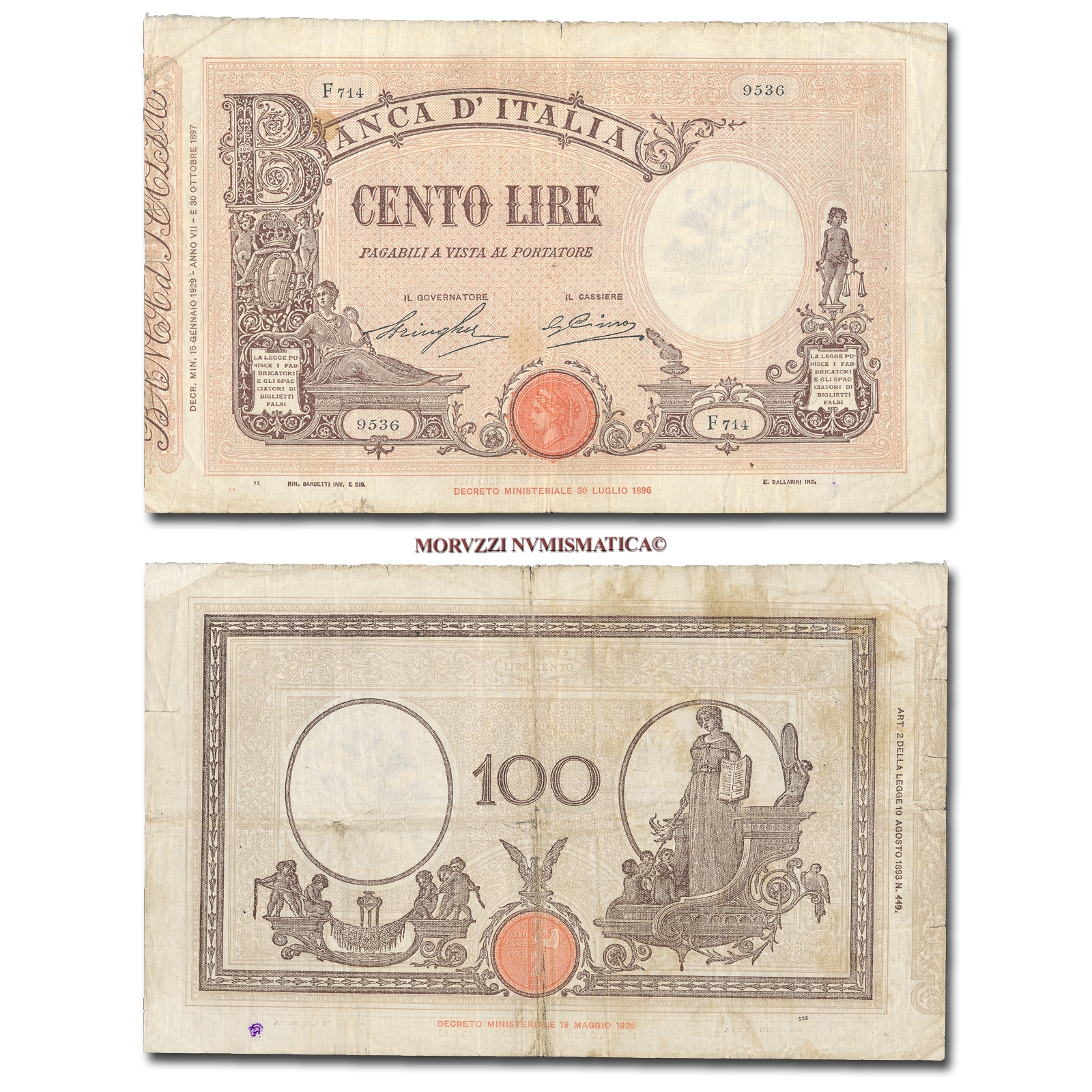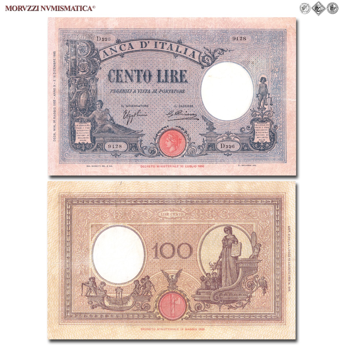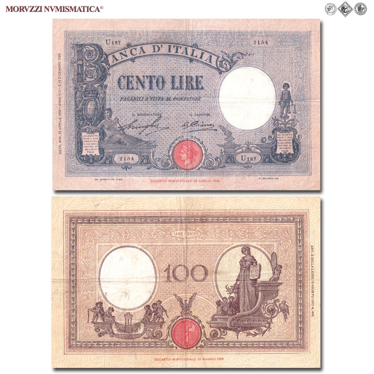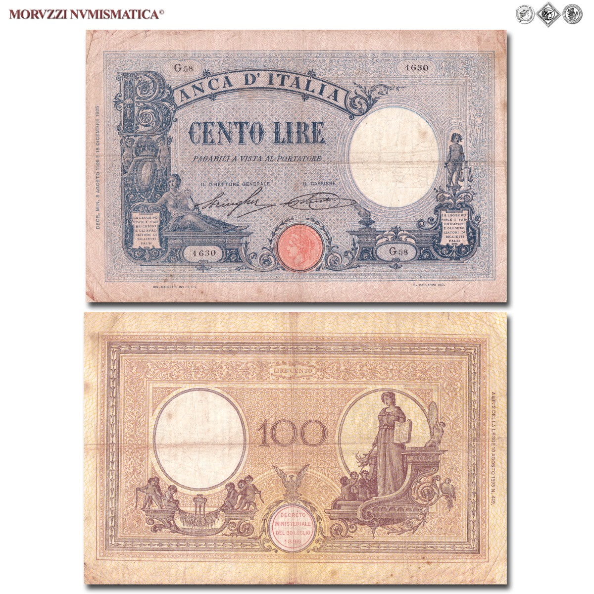 Regno d'Italia, Vittorio Emanuele III, BANCA D'ITALIA, LIRE 100, Barbetti Matrice laterale - decreto ministeriale, 12.02.1921, Firme: Stringher, Sacchi, mBB, (R), (Crapanzano 173) / banconote italiane rare (cartamoneta italiana rara da collezione)
