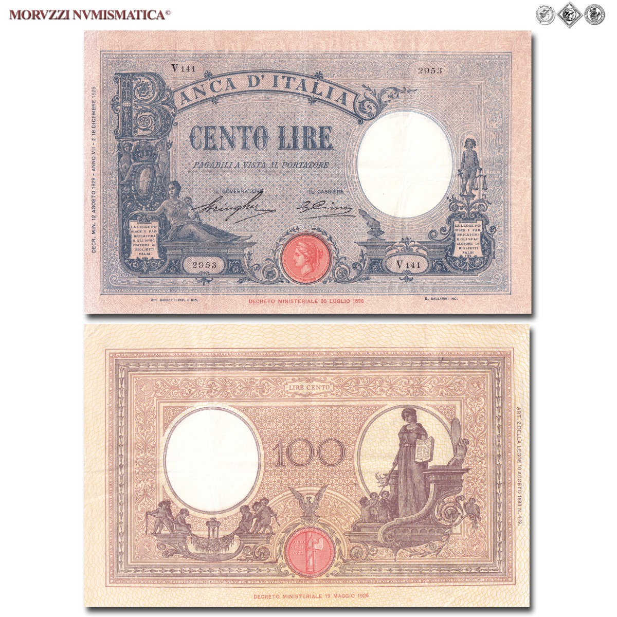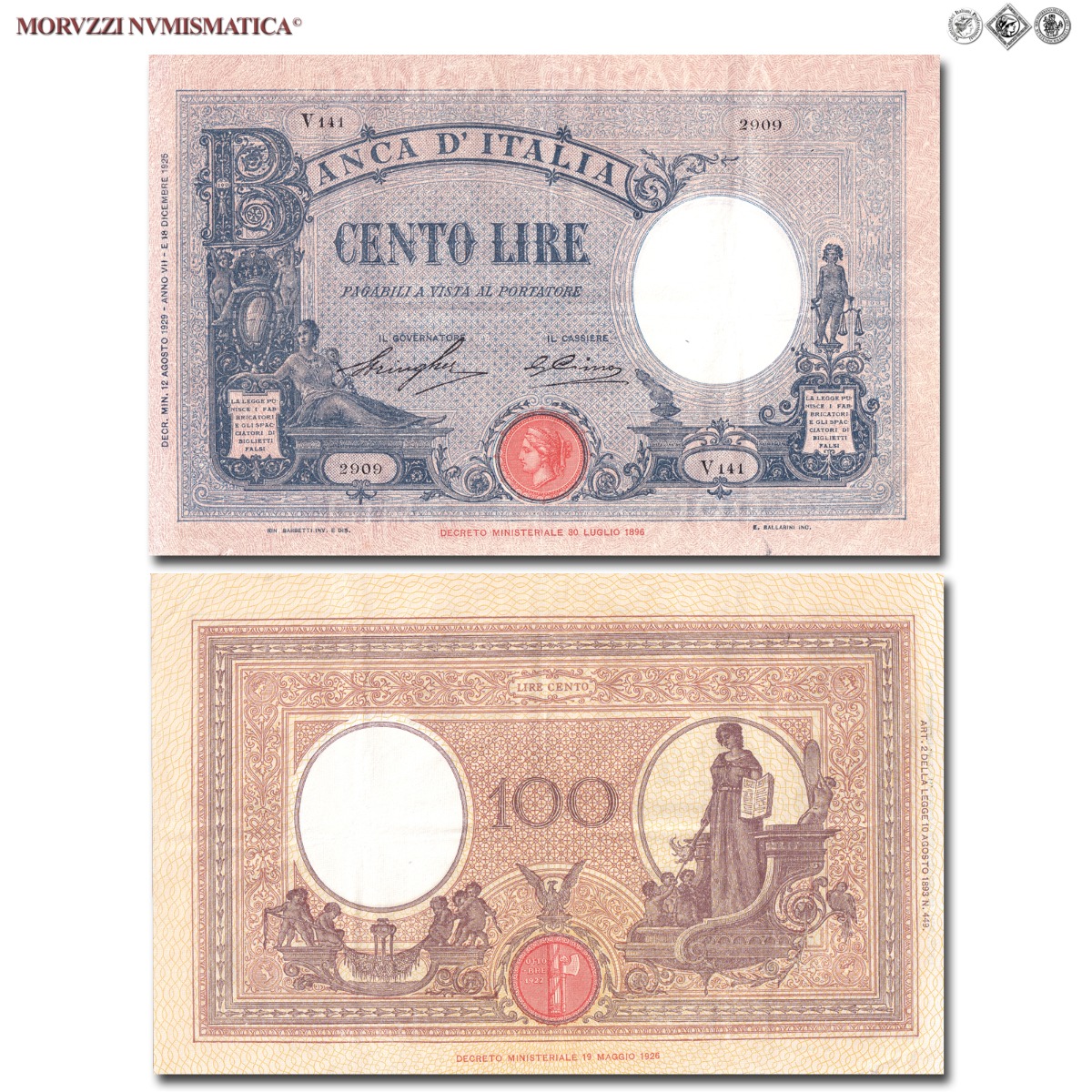 Regno d'Italia, Vittorio Emanuele III, BANCA D'ITALIA, 100 LIRE, 15.01.1929, Barbetti matrice - fascio (contrassegno di Stato: Testina d'Italia), Firme: Stringher, Cima, BB, (R), (Crapanzano 202) / banconote italiane rare