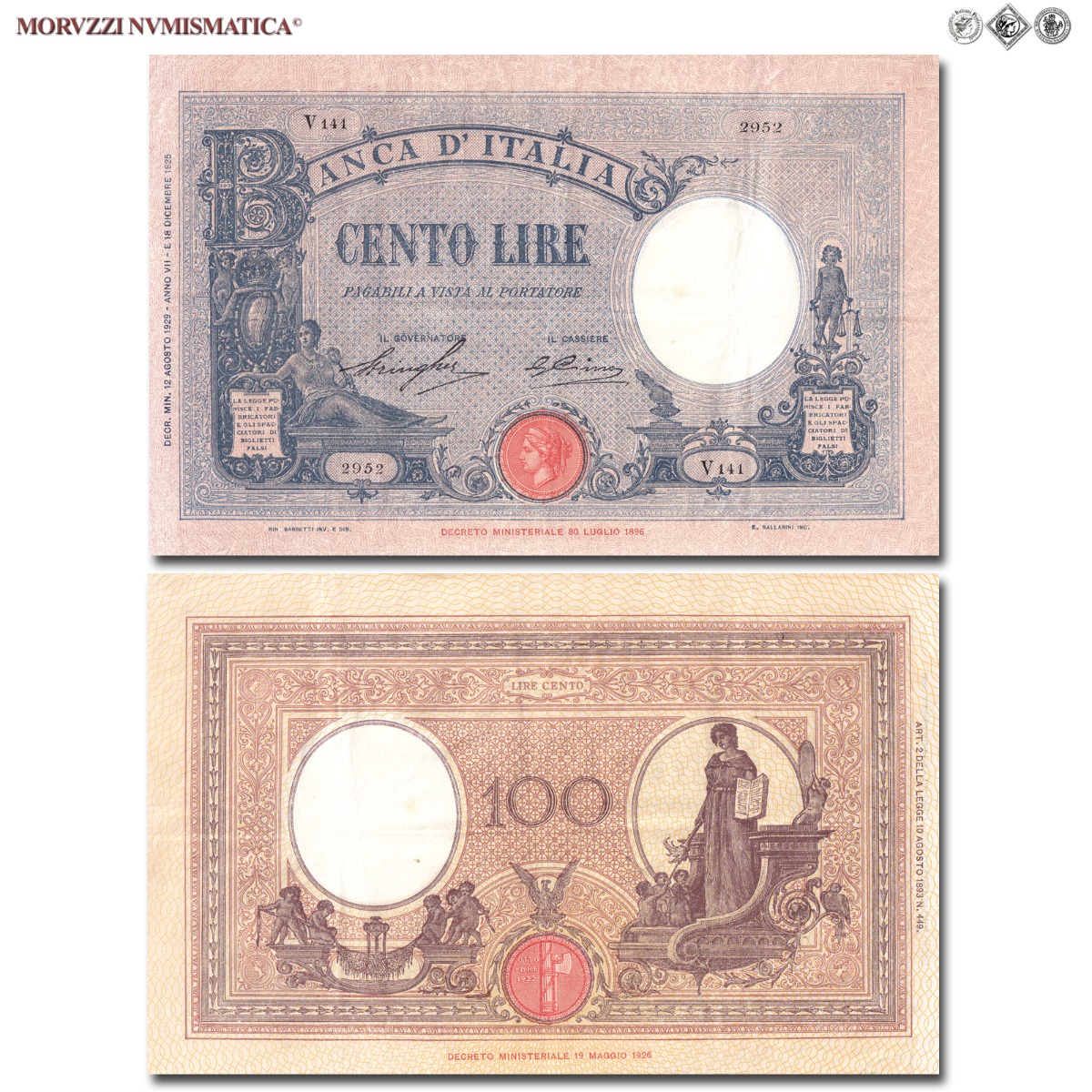 Regno d'Italia, Vittorio Emanuele III, BANCA D'ITALIA, 100 LIRE, 08.08.1926, Barbetti modificato azzurro - fascio (contrassegno di Stato: Testina d'Italia), Firme: Azzolini, Cima, mMB, (RRR), (Crapanzano 196) banconote italiane rare (cartamoneta italiana)