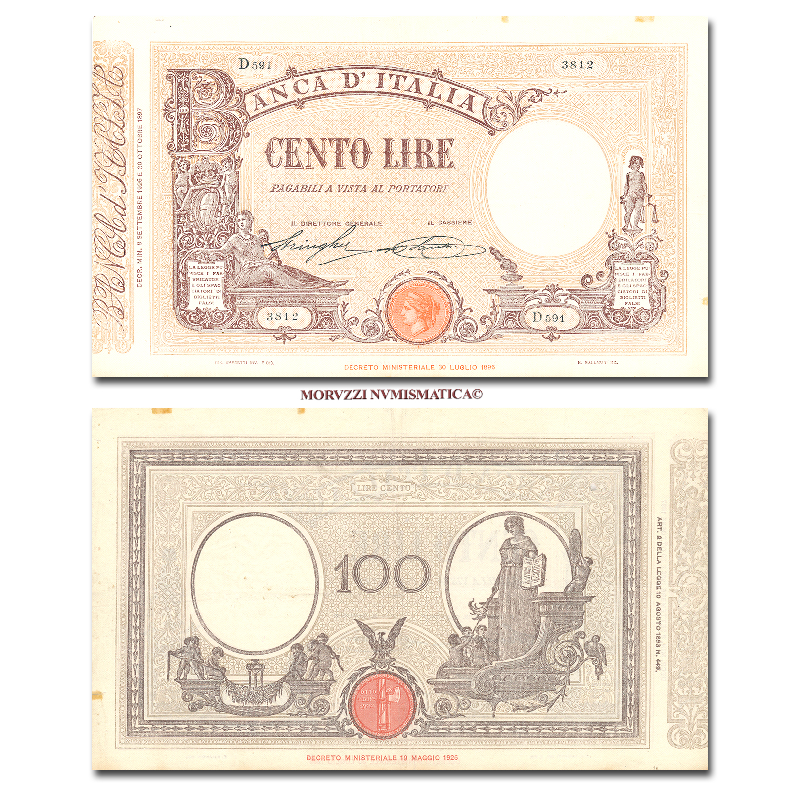 Italia, Vittorio Emanuele III, BANCA D'ITALIA, 100 LIRE, 08.09.1926, Barbetti - matrice/ fascio, (Crapanzano 193-1)