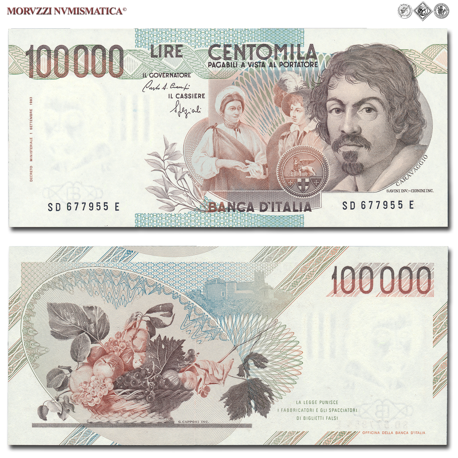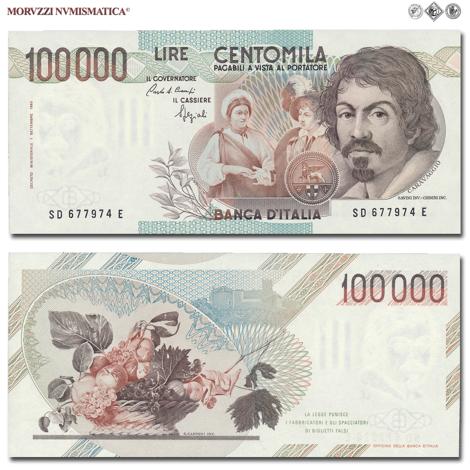 Repubblica Italiana, BANCA D'ITALIA, 100000 LIRE, 28.10.1985, Caravaggio I tipo - Serie B, Firme: Ciampi, Stevani, mSPL, (Crapanzano 621) / banconote italiane (cartamoneta italiana da collezione - banconota da 100.000 lire)