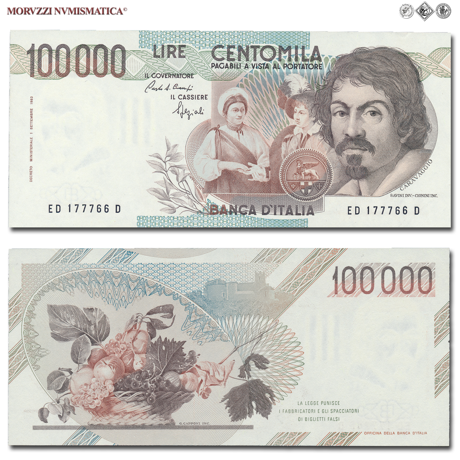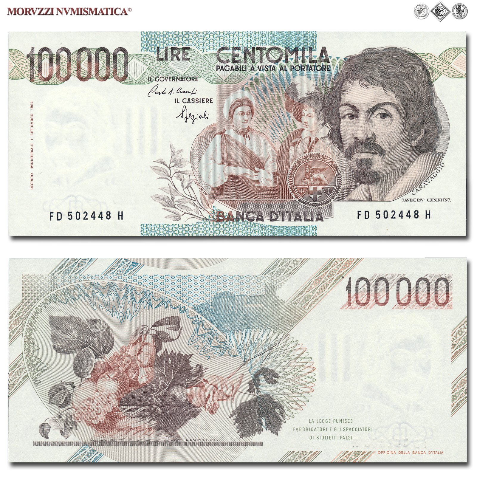Repubblica Italiana, BANCA D'ITALIA, 100000 LIRE, 25.01.1990, Caravaggio I tipo - Serie D, Firme: Ciampi, Speziali, FDS, (Crapanzano 623) / banconote italiane (cartamoneta italiana da collezione - banconota da 100.000 lire)