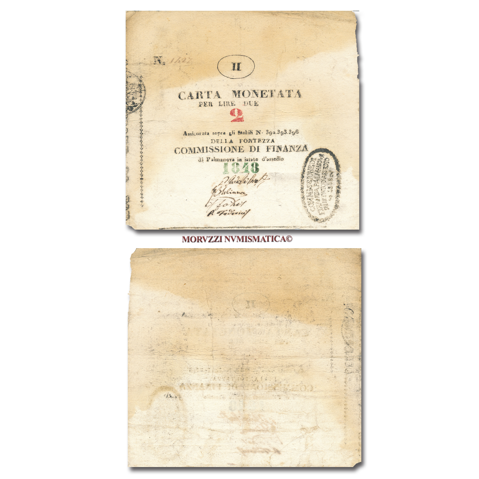 Palmanova, assedio, MONETAZIONE OSSIDIONALE, 2 LIRE, 1848, (Crapanzano AP 8)
