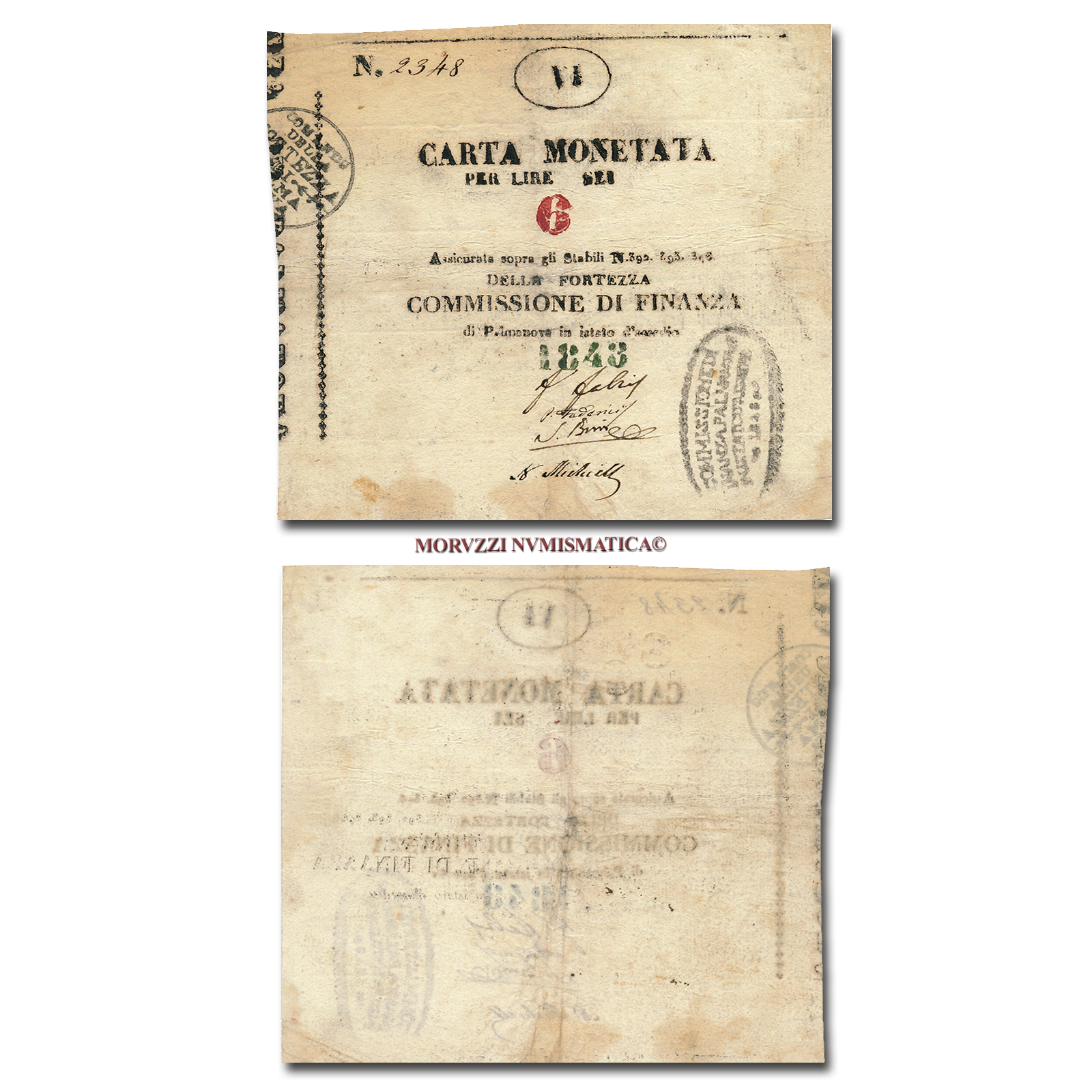 Palmanova, assedio, MONETAZIONE OSSIDIONALE, 6 LIRE, 1848, (Crapanzano AP 10)