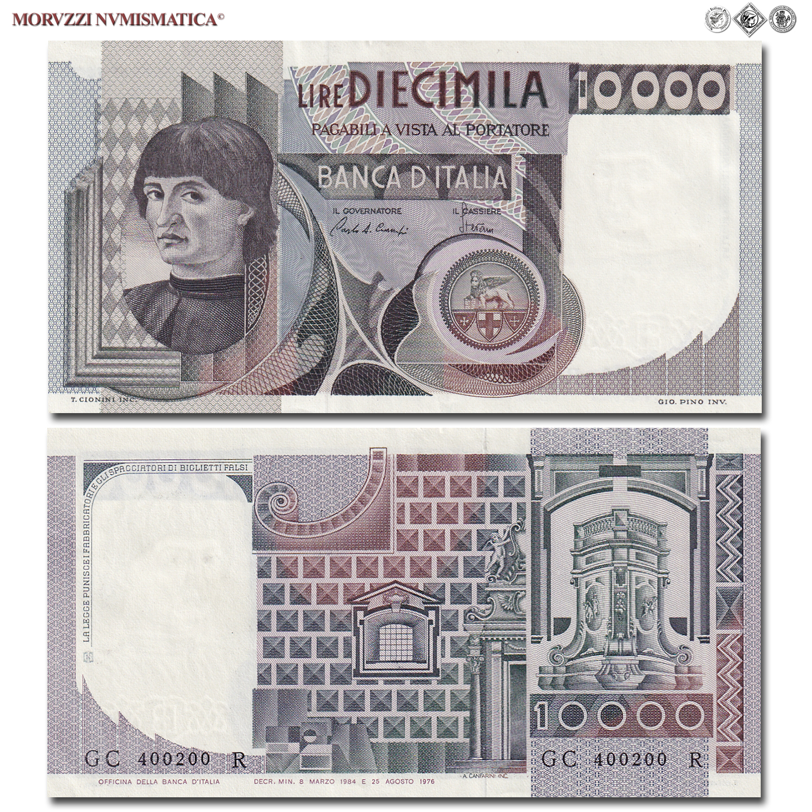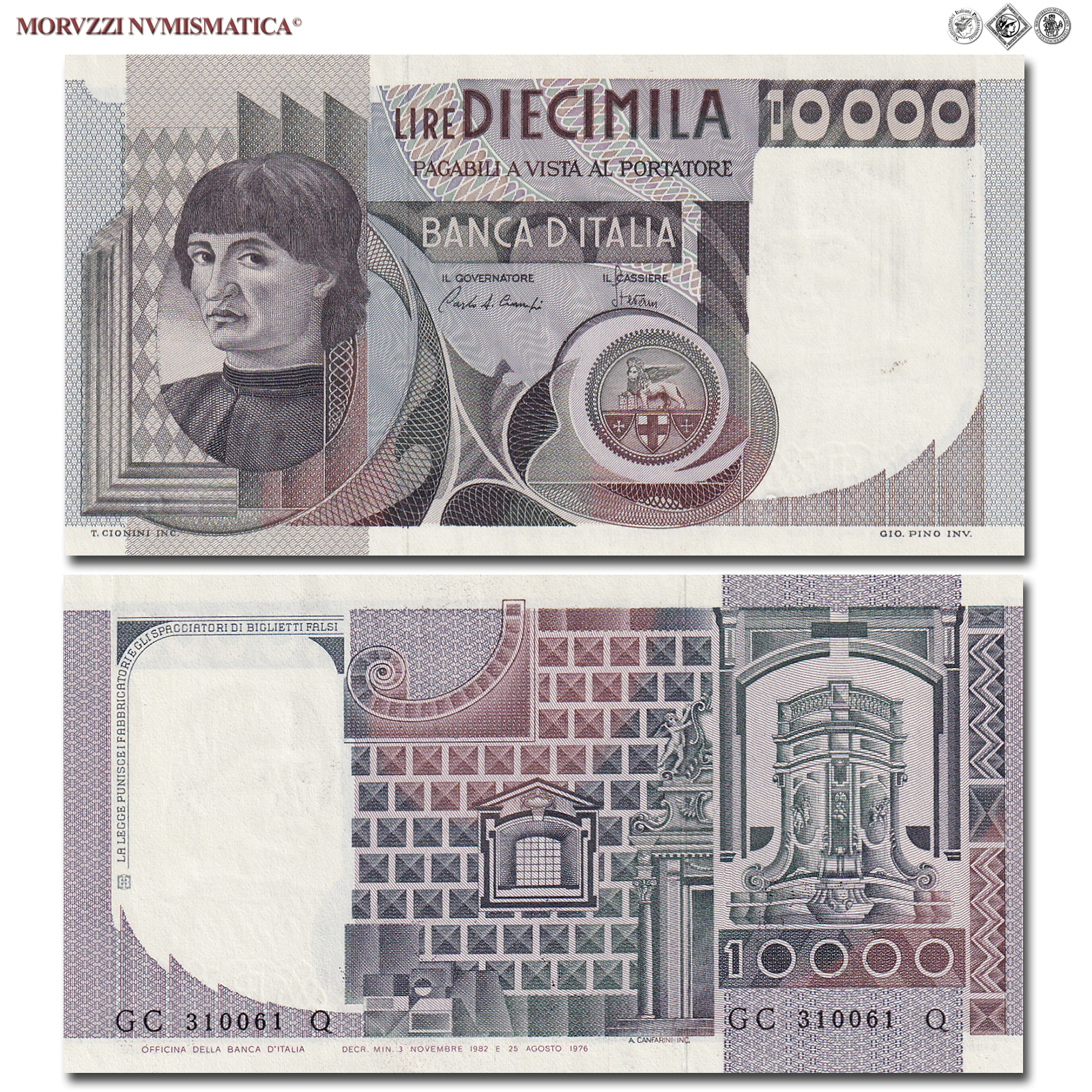 Repubblica Italiana, BANCA D'ITALIA, LIRE 10000, Ritratto d'uomo del Castagno - Machiavelli, 30.10.1976, Firme: Baffi, Stevani, FDS, (Crapanzano 580) / banconote italiane (cartamoneta italiana da collezione - banconota da 10.000 lire)