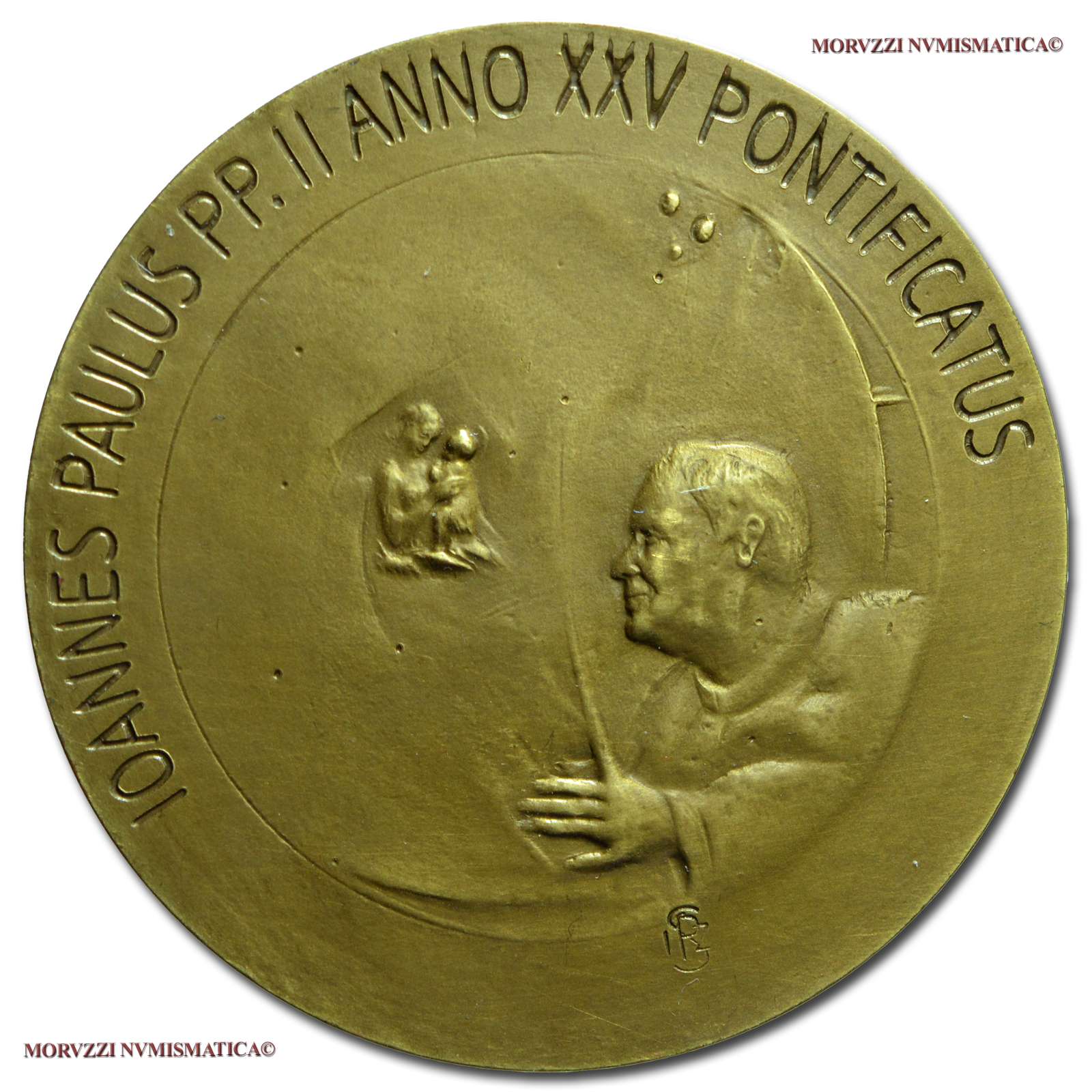 Città del Vaticano, GIOVANNI PAOLO II, MEDAGLIA ANNUALE IN BRONZO, 2003 ANNO XXV, Anno del Rosario, Opus Cecco Bonanotte, FDC, (Di Virgilio 329) / Papież Jan Paweł II Karol Józef Wojtyła (medaglie papali - medaglie pontificie) John Paul II BRONZE MEDALS