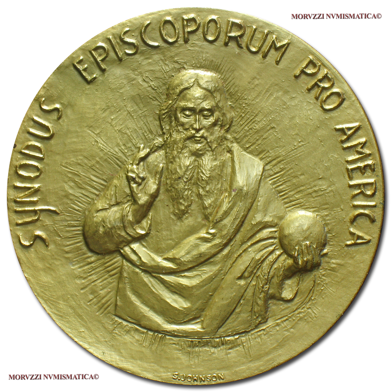 Medaglia coniata, realizzata dallo Stabilimento Stefano Johnson di Milano, per ricordare il Sinodo Speciale per le Americhe riunitosi dal 12/11 al 12/12/1997, con il tema: "Incontro con Gesú Cristo vivo: il cammino per la conversione, la comunione e la solidarietà in America".
