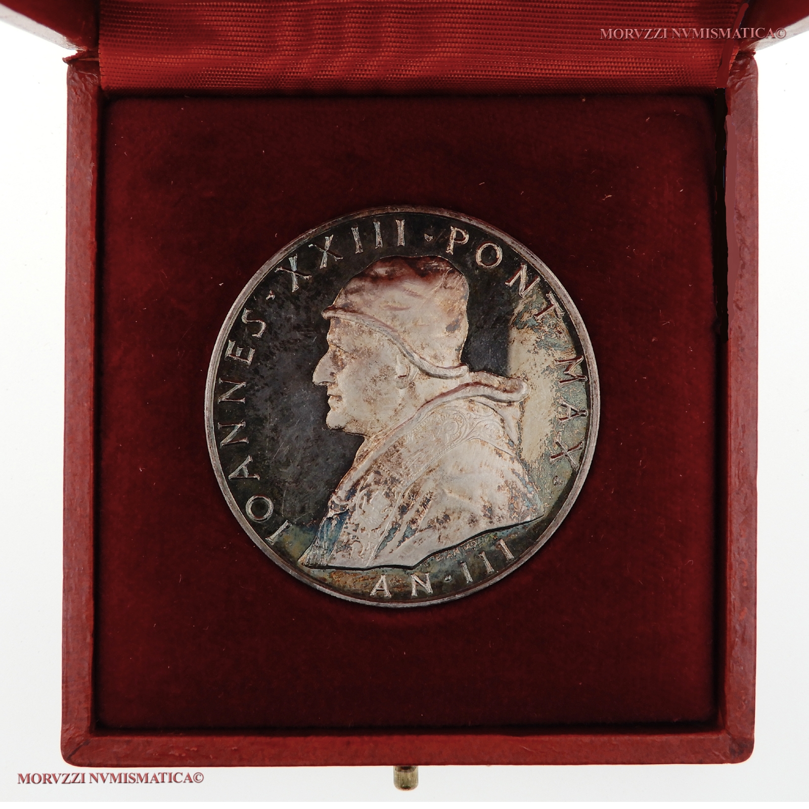 Città del Vaticano, GIOVANNI XXIII, MEDAGLIA ANNUALE IN ARGENTO, 1961 AN III, Canonizzazione di Gregorio Barbadico, Opus Pietro Giampaoli, FDC, (Bartolotti E961) / Pope John XXIII Roncalli SILVER MEDALS (medaglie papali d'argento - medaglie pontificie)