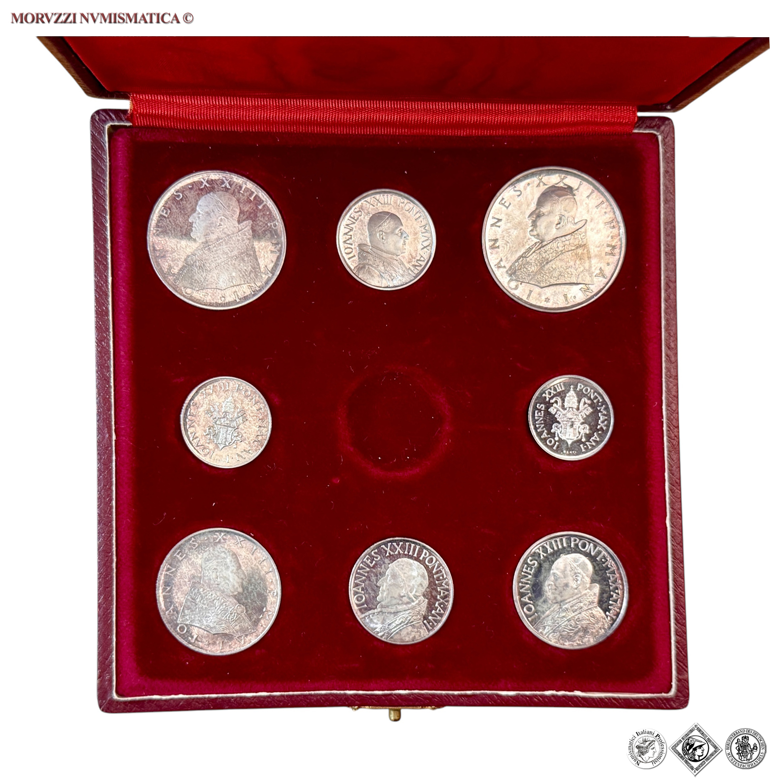 Città del Vaticano, GIOVANNI XXIII, Roncalli, 1958-1963, SERIE ANNUALE DI 8 VALORIPROVA ARGENTO, Emissione: 1959 ANNO I, Zecca di Roma, Rif. bibl. Montenegro, 270; Metallo: AR, (MX154349), FDC, (RRR)