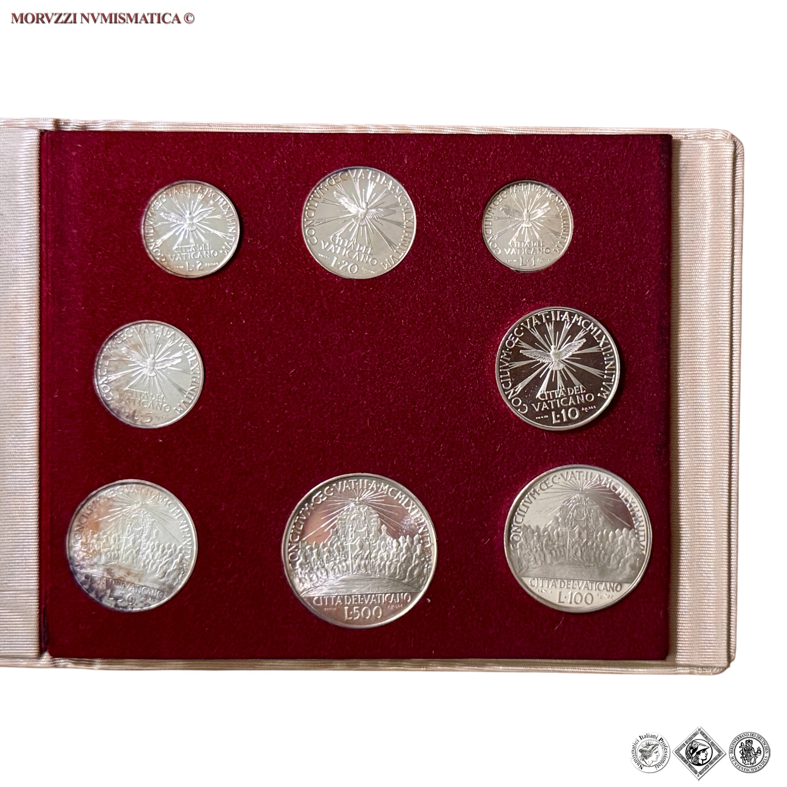 Serie prova in argento in astuccio cardinalizio.