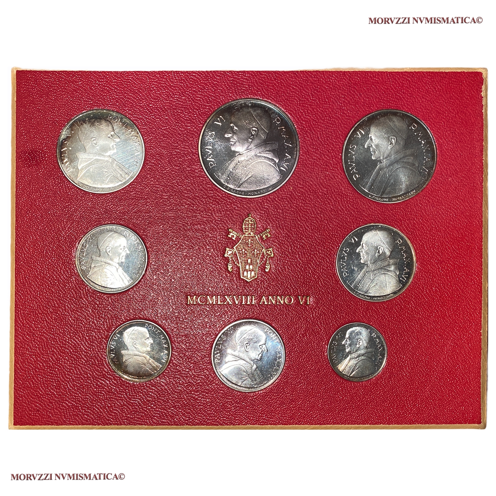 Città del Vaticano, PAOLO VI, Montini, 1963-1978, SERIE DI PROVA IN ARGENTO DA 8 MONETE Emissione: 1968 ANNO VI, Zecca di Roma, Metallo: AR, (MX127641), FDC, (RRR)