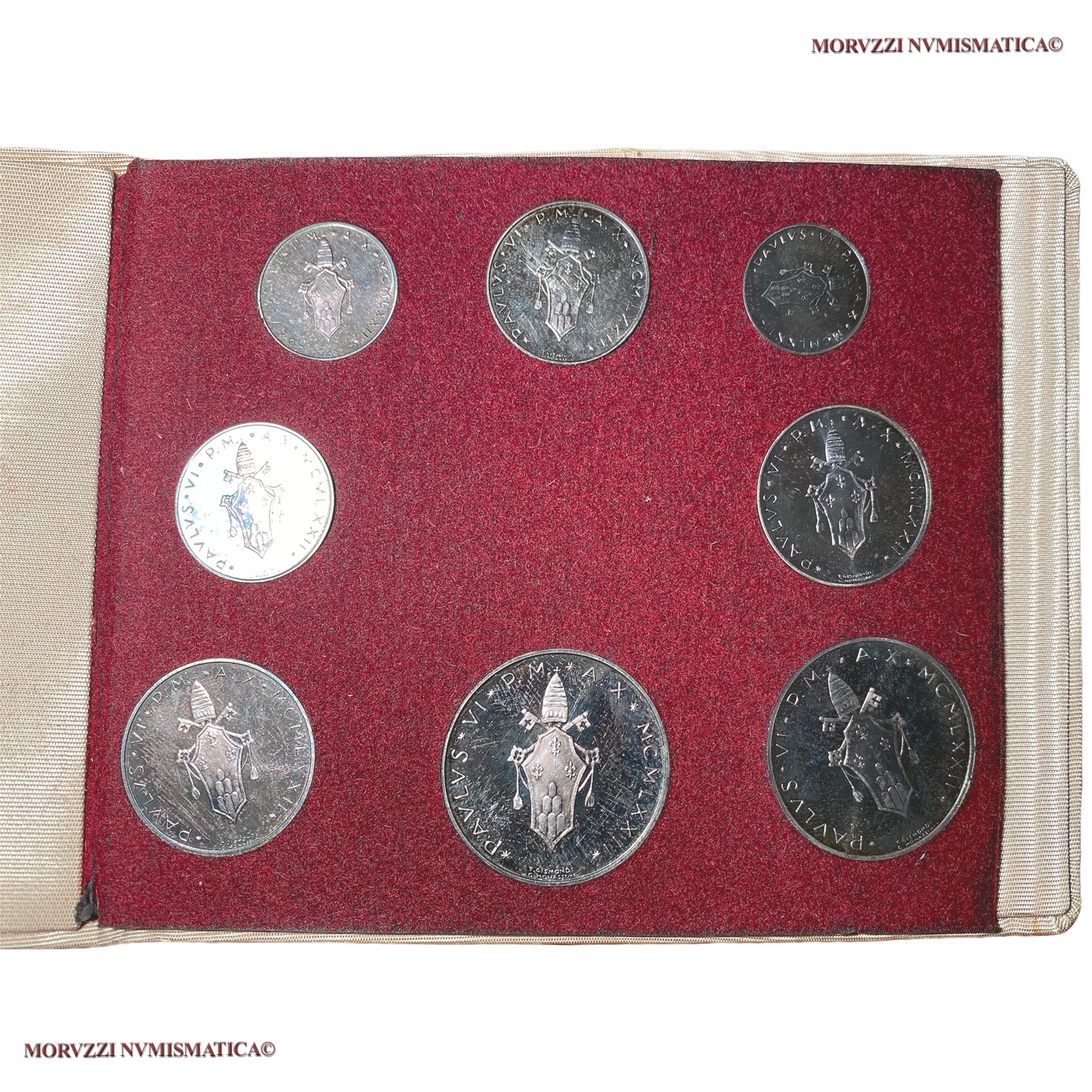 Città del Vaticano, PAOLO VI, Montini, 1963-1978, SERIE DI PROVA IN ARGENTO DA 8 MONETE Emissione: 1972 ANNO X, Zecca di Roma, Metallo: AR, (MX127643), FDC, (RRR)