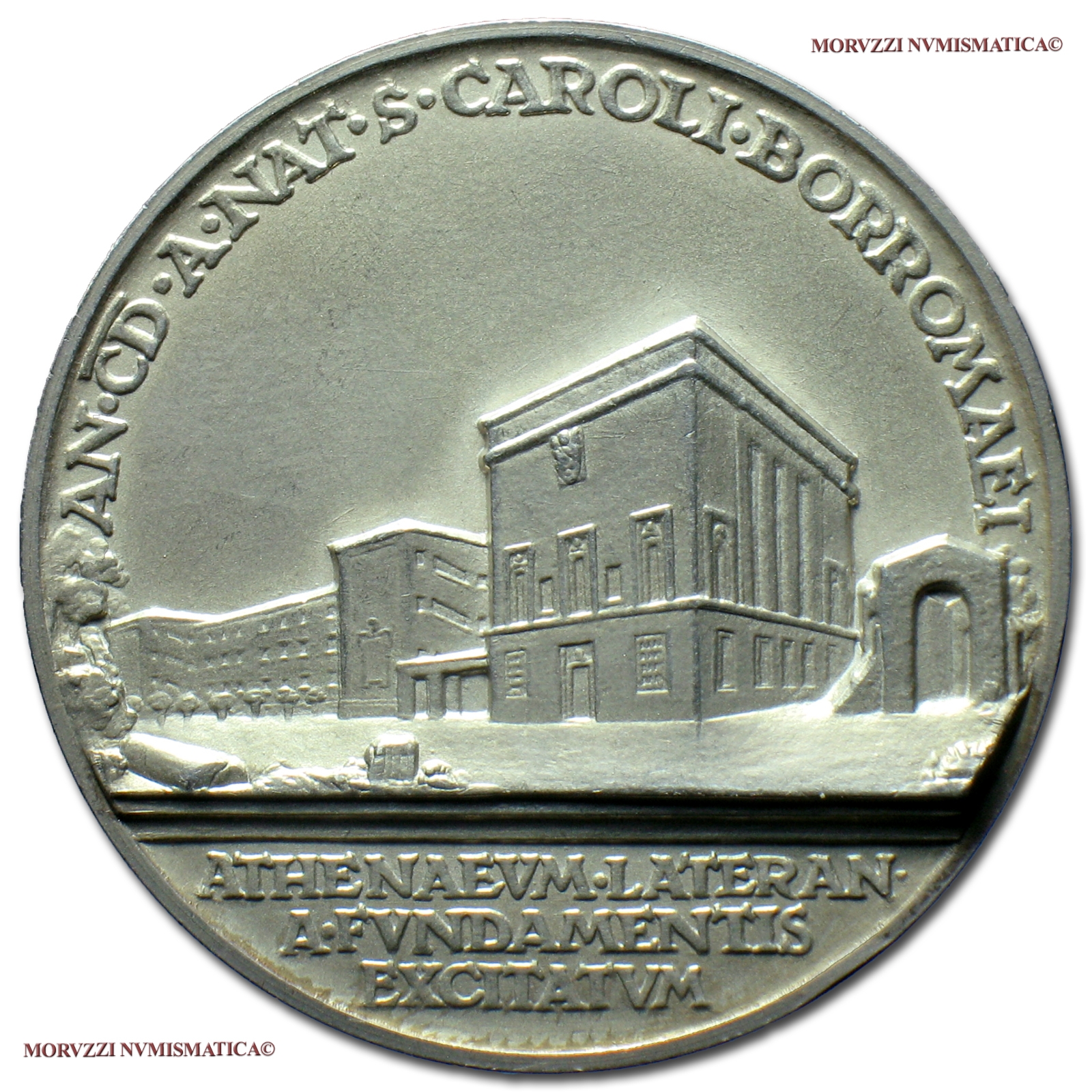 La medaglia ricorda la fondazione e costruzione del nuovo ateneo Lateranense nel IV centenario della nascita di San Carlo Borromeo e fu l'ultima emessa da Pio XI.