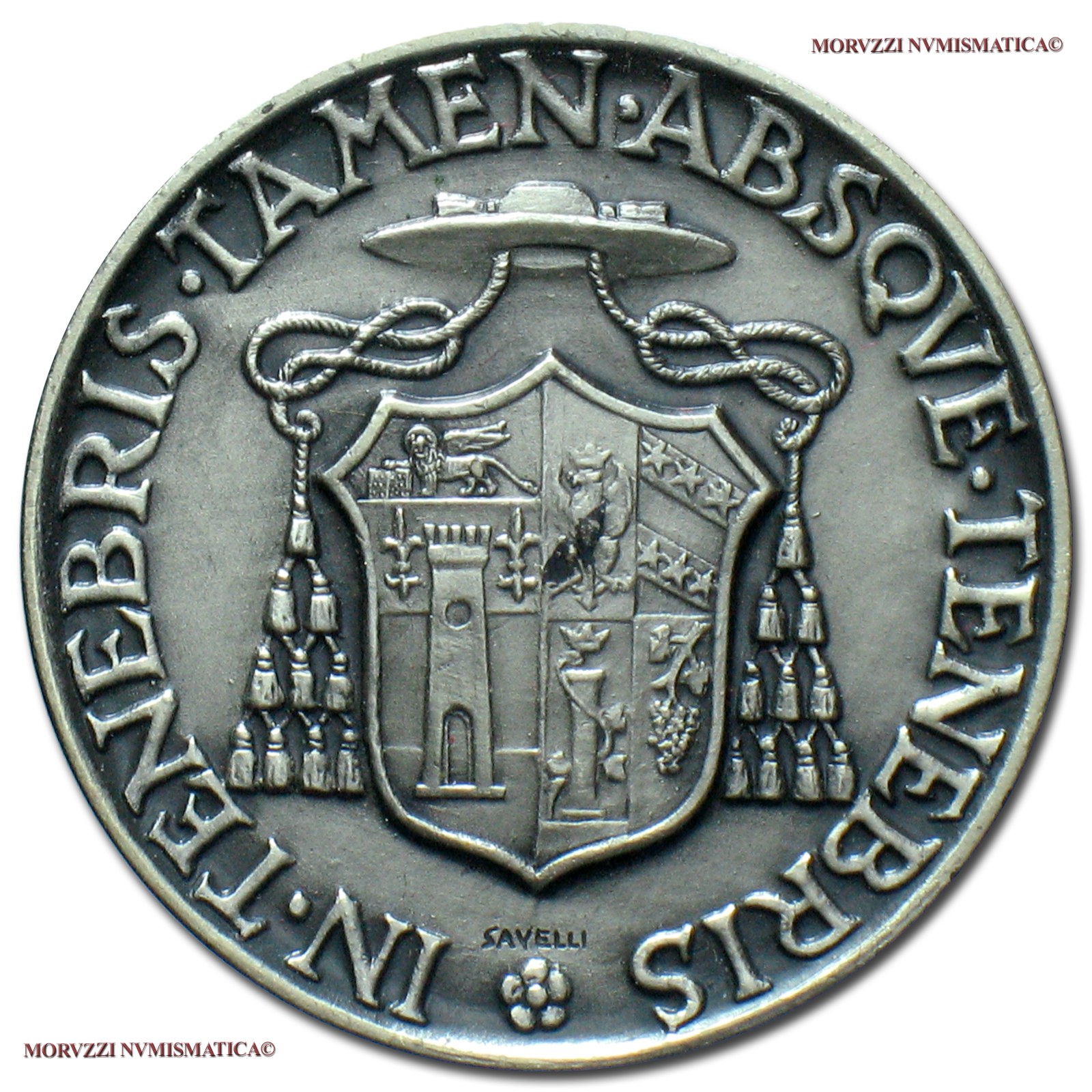 Città del Vaticano, SEDE VACANTE, 1963, MEDAGLIA IN ARGENTO, Governatore del Conclave Arcivescovo Federico Callori di Vignale, Emissione: 1963, D/ * IN TENEBRIS TAMEN ABSQVE TENEBRIS, stemma del Monsignor Callori di Vignale sormontato da galero a dieci nodi; sotto: SAVELLI, R/ - SEDE • VACANTE • ANNO • DOMINI • MCMLXIII, nel campo: FRIDERICVS / CALLORI / DI VIGNALE / CONCLAVIS / GVBERNATOR / (chiave), Opus Aurelio Mistruzzi per la ditta Savelli di Roma, Rif. bibl. Boccia, 126; Metallo: AR, gr. 16,77, (MP120592), Diam.: mm. 31,92, FDC, (R)