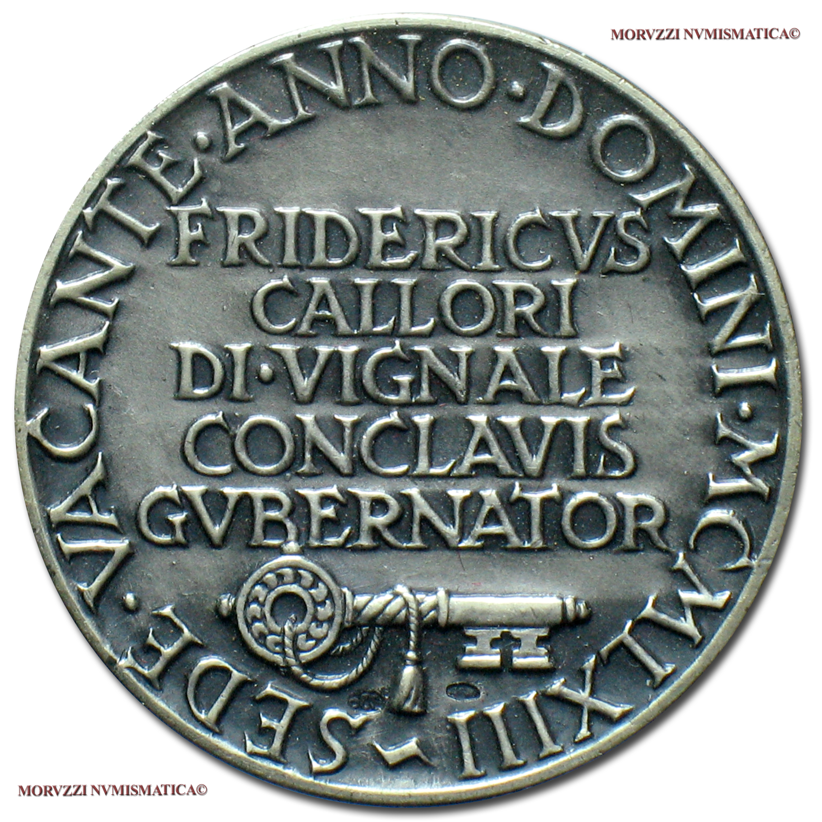 Città del Vaticano, SEDE VACANTE 1963, MEDAGLIA IN ARGENTO, Governatore del Conclave Arcivescovo Federico Callori di Vignale, Opus Aurelio Mistruzzi per la ditta Savelli di Roma, FDC, (R), (Boccia 126) medaglie papali rare d'argento (medaglie pontificie)