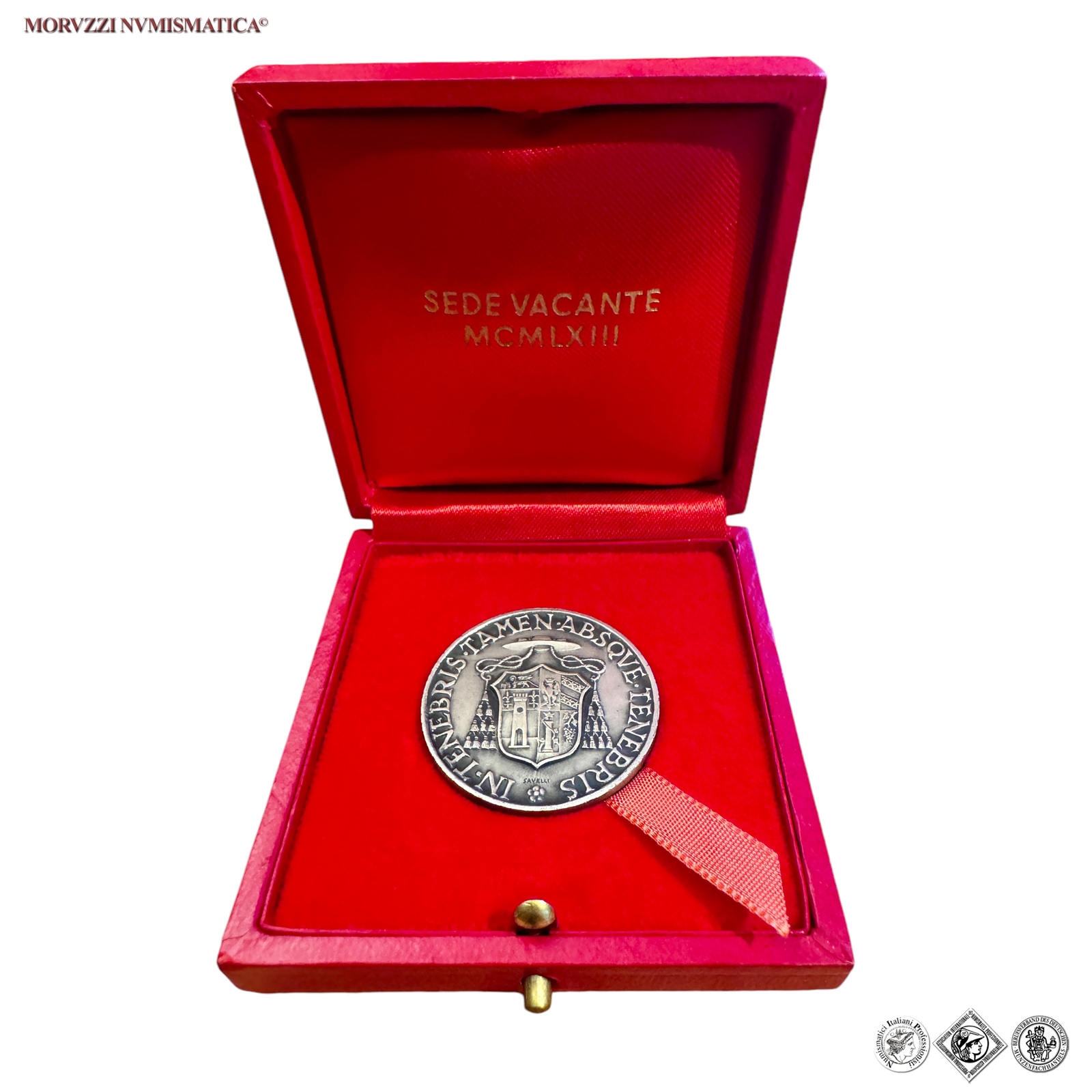 Città del Vaticano, SEDE VACANTE, 1963, MEDAGLIA, Governatore del Conclave Arcivescovo Federico Callori di Vignale, Emissione: 1963, D/ * IN TENEBRIS TAMEN ABSQVE TENEBRIS, stemma del Monsignor Callori di Vignale sormontato da galero a dieci nodi; sotto: SAVELLI, R/ - SEDE • VACANTE • ANNO • DOMINI • MCMLXIII, nel campo: FRIDERICVS / CALLORI / DI VIGNALE / CONCLAVIS / GVBERNATOR / (chiave), Opus Aurelio Mistruzzi per la ditta Savelli di Roma, Rif. bibl. Boccia, 126; Metallo: AR, gr. 16,39, (MP118940), Diam.: mm. 31,96, FDC, (R)