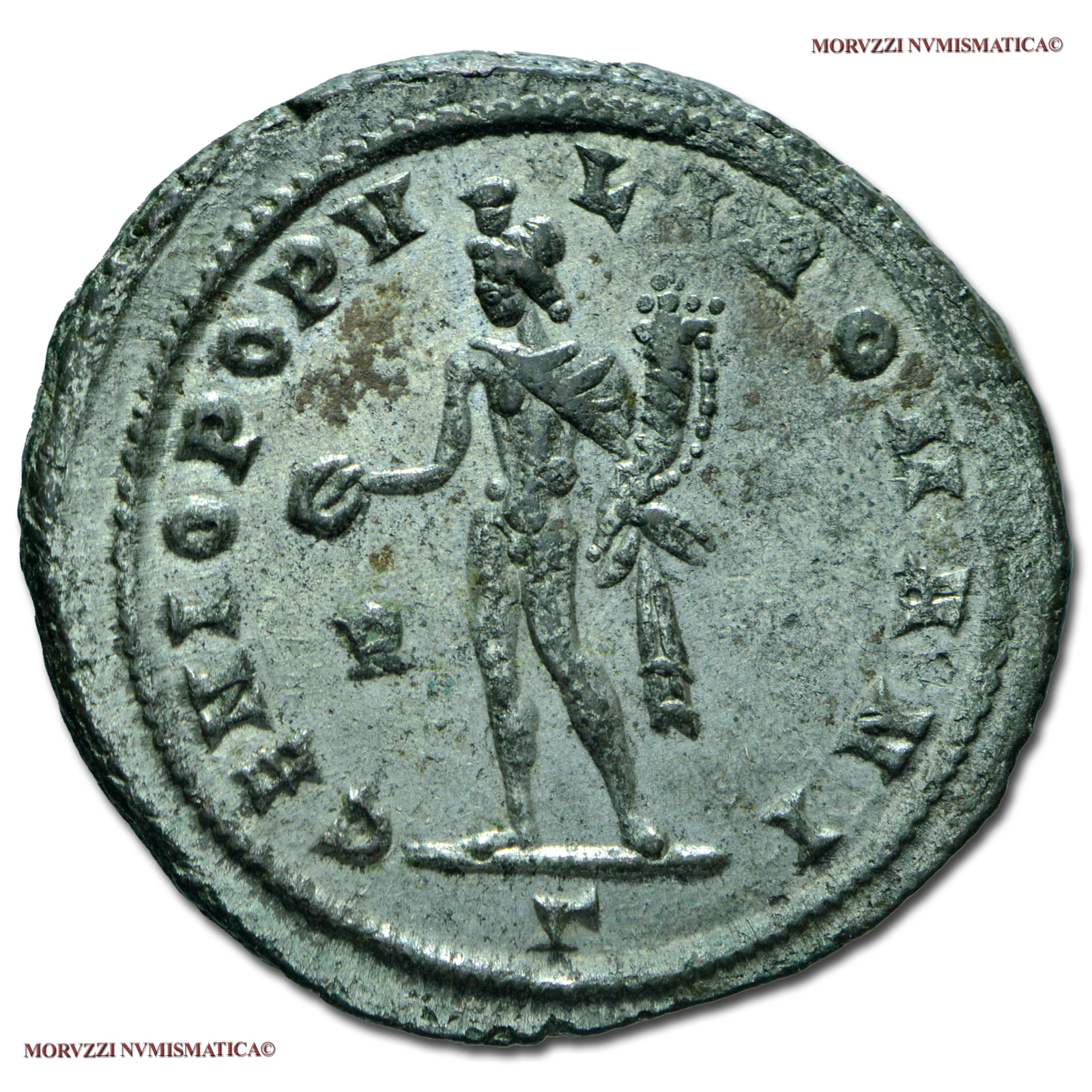 Impero Romano, COSTANZO I CLORO, Cesare, 305-306 d.C. d.C., FOLLIS, Emissione: 296-297 d.C., D/ FL VAL CONSTANTIVS NOB C, testa laureata a destra, R/ GENIO POPVLI ROMANI / R #G#, il Genio stante a sinistra con il modius sul capo ed il mantello sulla spalla sinistra, tiene una patera nella mano destra ed una cornucopia nella sinistra. A sinistra una R, Zecca di Roma, Rif. bibl. R.I.C., 66a; Cohen, 113; Metallo: AE, gr. 10,08, (MR26914), Diam.: mm. 28,35, mBB