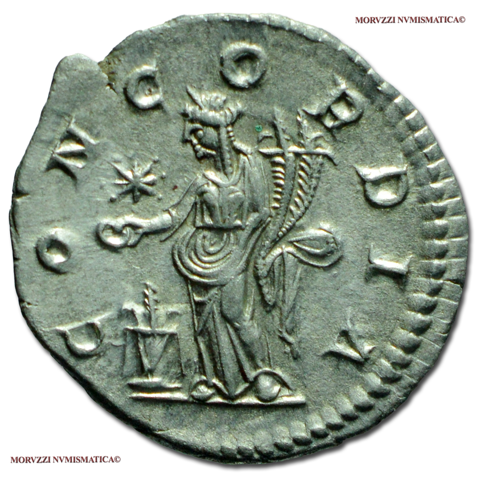 AQUILIA SEVERA, DENARIO, 218-222 d.C., CONCORDIA la Concordia con doppia cornucopia sacrifica con patera su un altare, zecca di Antiochia, ARGENTO, SPL, (R), (RIC 225/S) / monete romane imperiali antiche rare d'argento (moneta romana rara - Impero Romano)