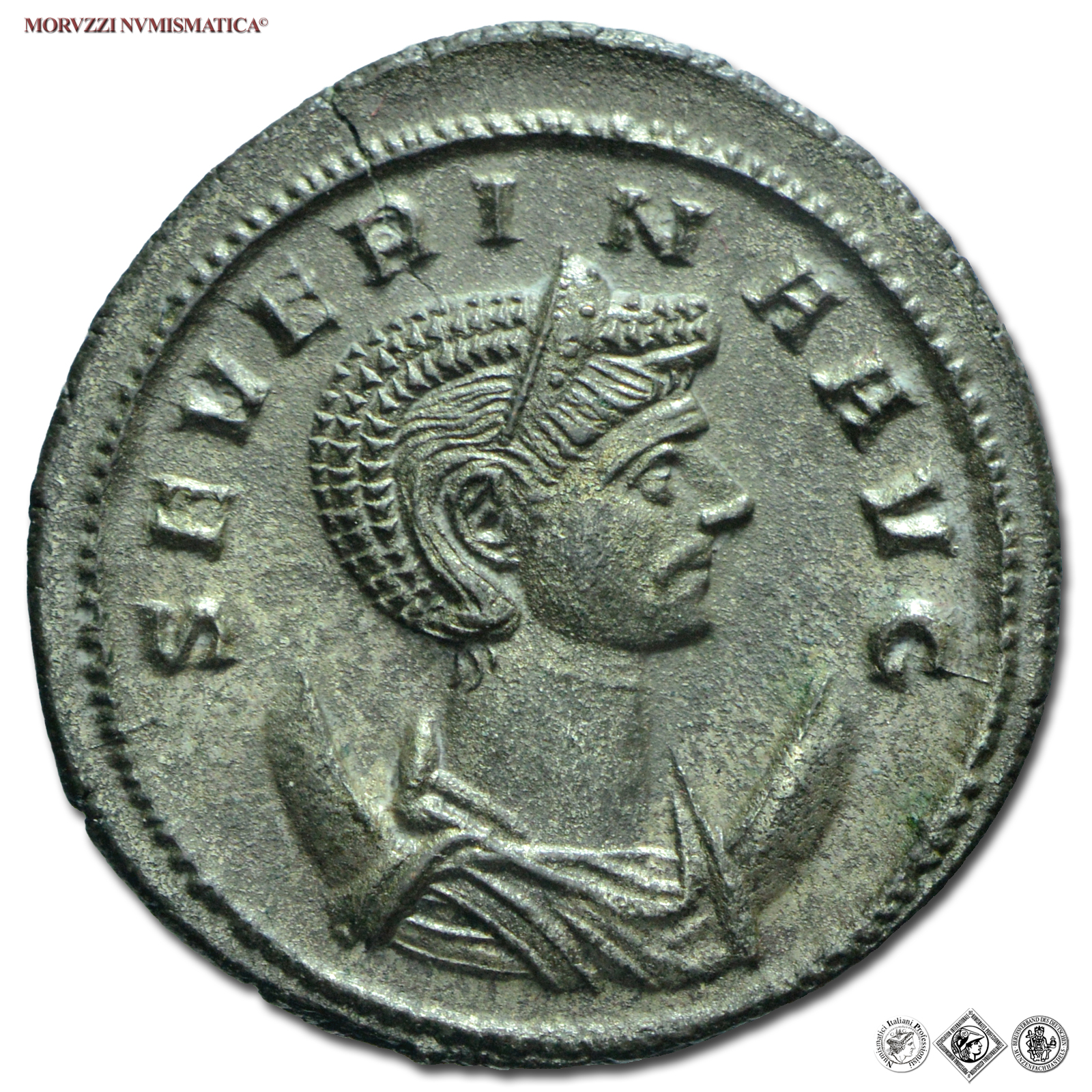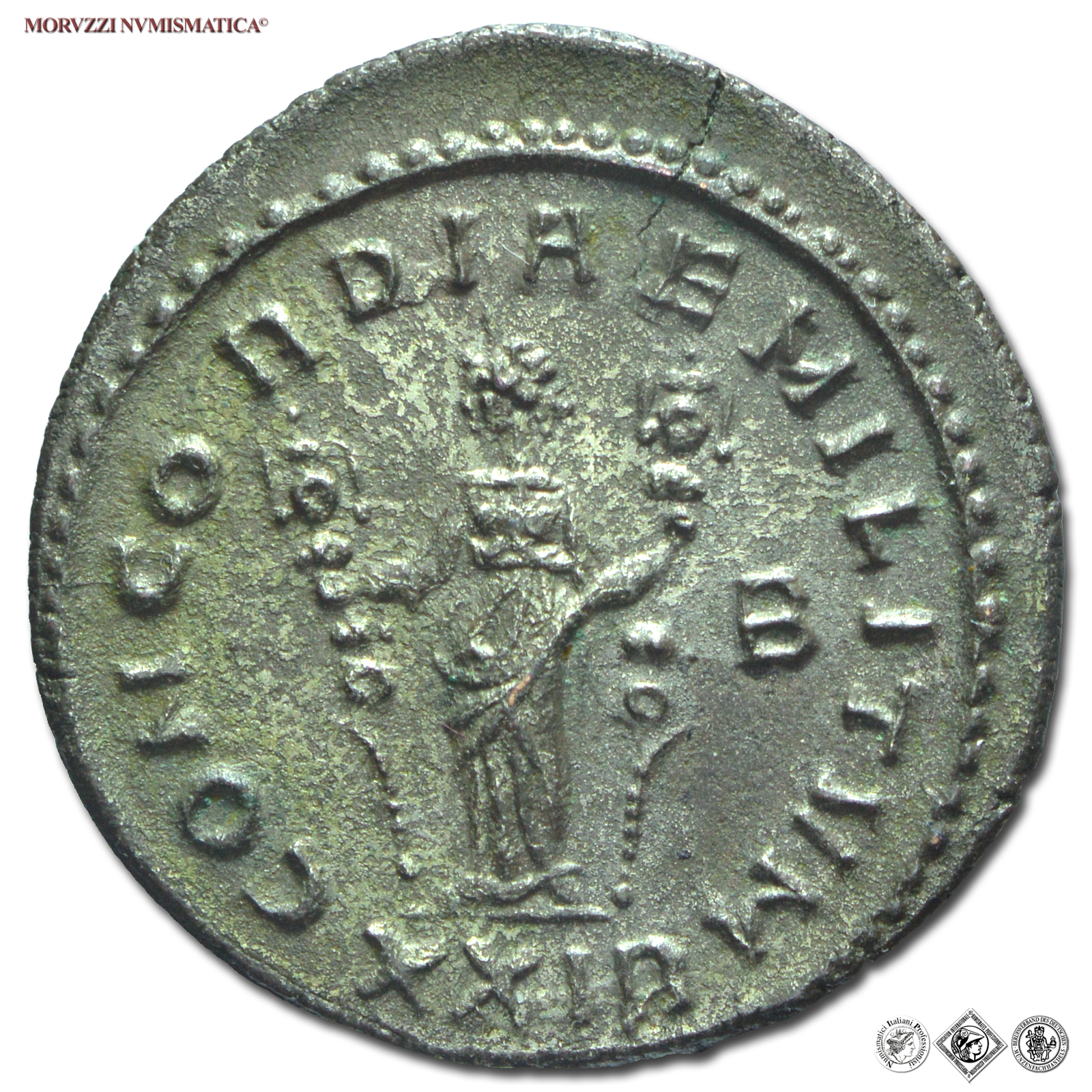 Impero Romano, SEVERINA, Moglie di Aureliano, 270-275 d.C., ANTONINIANO, Emissione: 270-275 d.C., D/ SEVERINA AVG, busto diademato e ammantato a destra, R/ CONCORDIAE MILITVM / XXIR / B, la Concordia stante a sinistra sostiene con entrambe le mani due insegne, Zecca di Roma, Rif. bibl. R.I.C., 4; Cohen, 7/Fr.2; Metallo: AR, gr. 3,96, (MR24714), Diam.: mm. 22,73, SPL