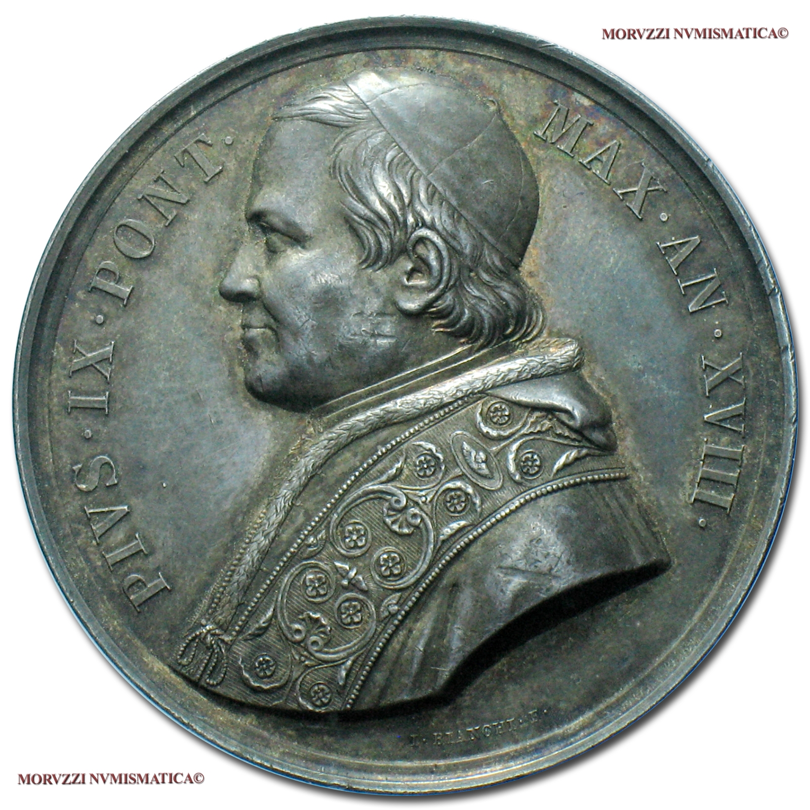 Stato Pontificio, PIO IX, MEDAGLIA ANNUALE IN ARGENTO, 1863 AN XVIII, Nuova Manifattura dei tabacchi, Opus Ignazio Bianchi, SPL, (Bartolotti E863) / Pope Pius IX Mastai Ferretti SILVER MEDALS (medaglie papali d'argento - medaglie pontificie annuali)