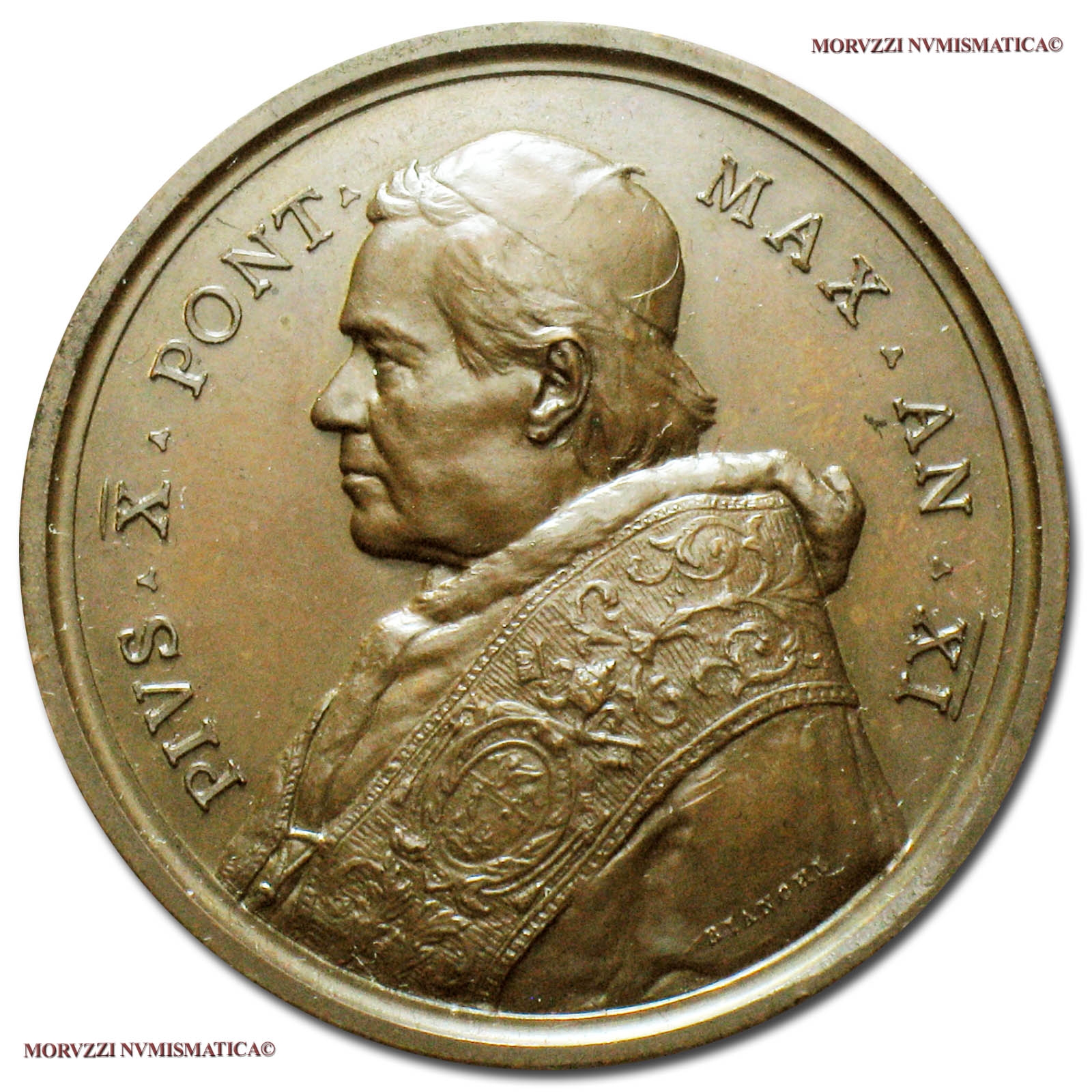 Stato Pontificio, PIO X, Sarto, 1903-1914, MEDAGLIA ANNUALE IN BRONZO, Il nuovo Seminario Romano Maggiore, Emissione: 1914 AN XI, D/ PIVS • X • PONT • MAX • AN • XI, busto con zucchetto, mozzetta e stola a s., BIANCHI sotto, R/ veduta del Pontificio Seminario Romano Maggiore al Laterano; ALVMNIS • SACRI • ORDINIS / AD • VETEREM • KLERI • ROM • / GLOR • EDVCENDIS in esergo; C. SNEIDER. ARCH. sulla riga dell'esergo, Opus Francesco Bianchi, Rif. bibl. Bart., E914; Metallo: AE, gr. 32,49, (MP54260), Diam.: mm. 43,83, FDC, (NC)
