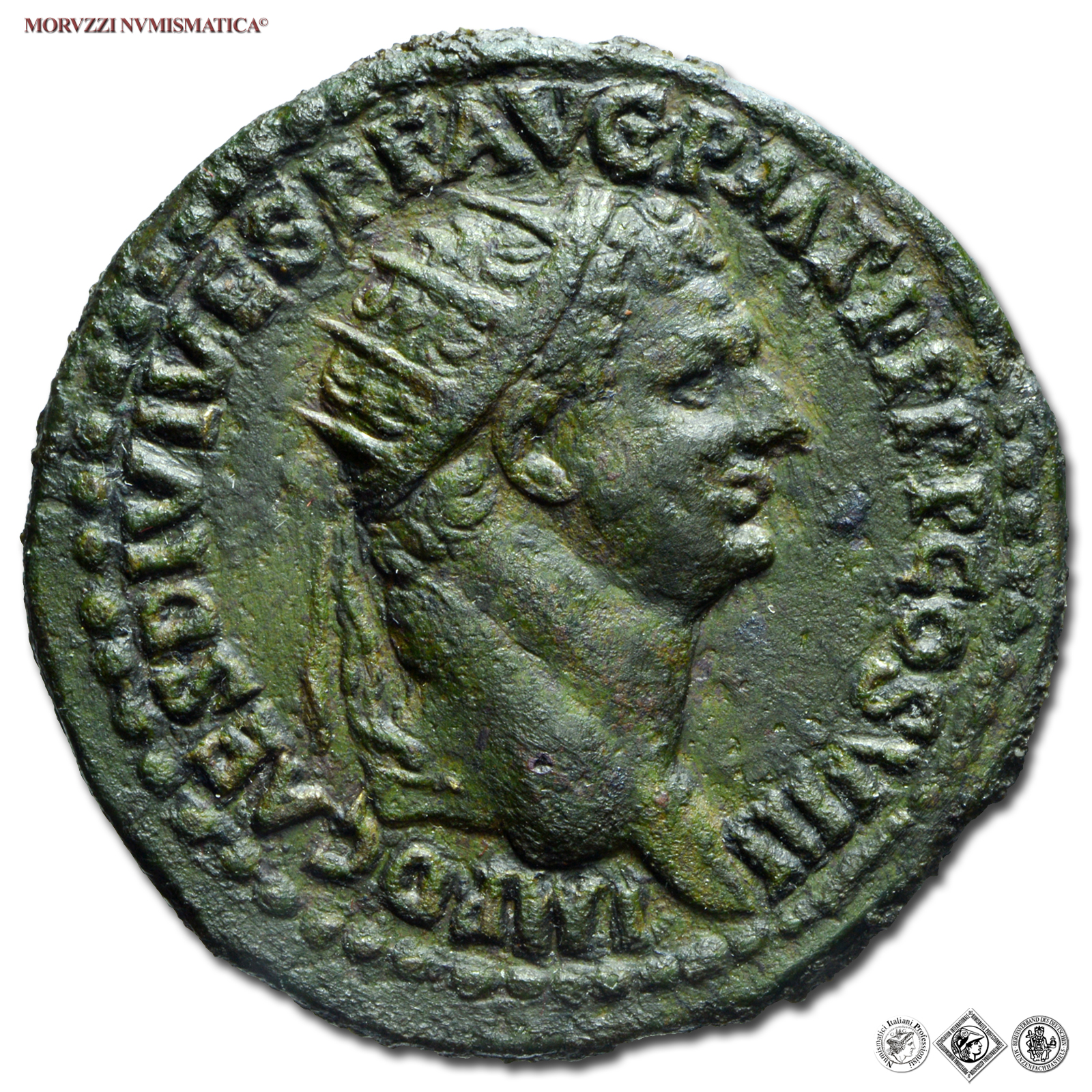 DOMIZIANO, 81-96 d.C., DUPONDIO, Emissione: 82 d.C., Zecca di Tracia, Rif. bibl. R.I.C. II ed., 839/R2; Cohen, 410/Fr. 6; Metallo: AE, gr. 12,80, (MR145855), Diam.: mm. 30,09, mBB, (RR)