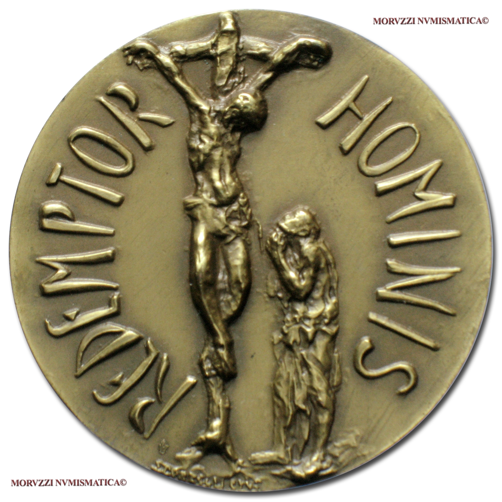 Città del Vaticano, GIOVANNI PAOLO II, Wojtyla, 1978-2005, MEDAGLIA ANNUALE IN BRONZO DORATO, Enciclica Redemptor Hominis,Emissione: 1980 ANNO II, D/ JOANNES PAULUS II PONT • MAX • ANNO II •, busto a d. con berretto, mozzetta e stola, R/ REDEMPTOR HOMINIS, il Cristo sulla Croce; ai suoi piedi un orante; sotto: SCORZELLI SCULP •, Opus Lello Scorzelli, Rif. bibl. Di Virgilio, 17; Metallo: AE dorato, gr. 34,08, (MP138774), Diam.: mm. 43,92, FDC
